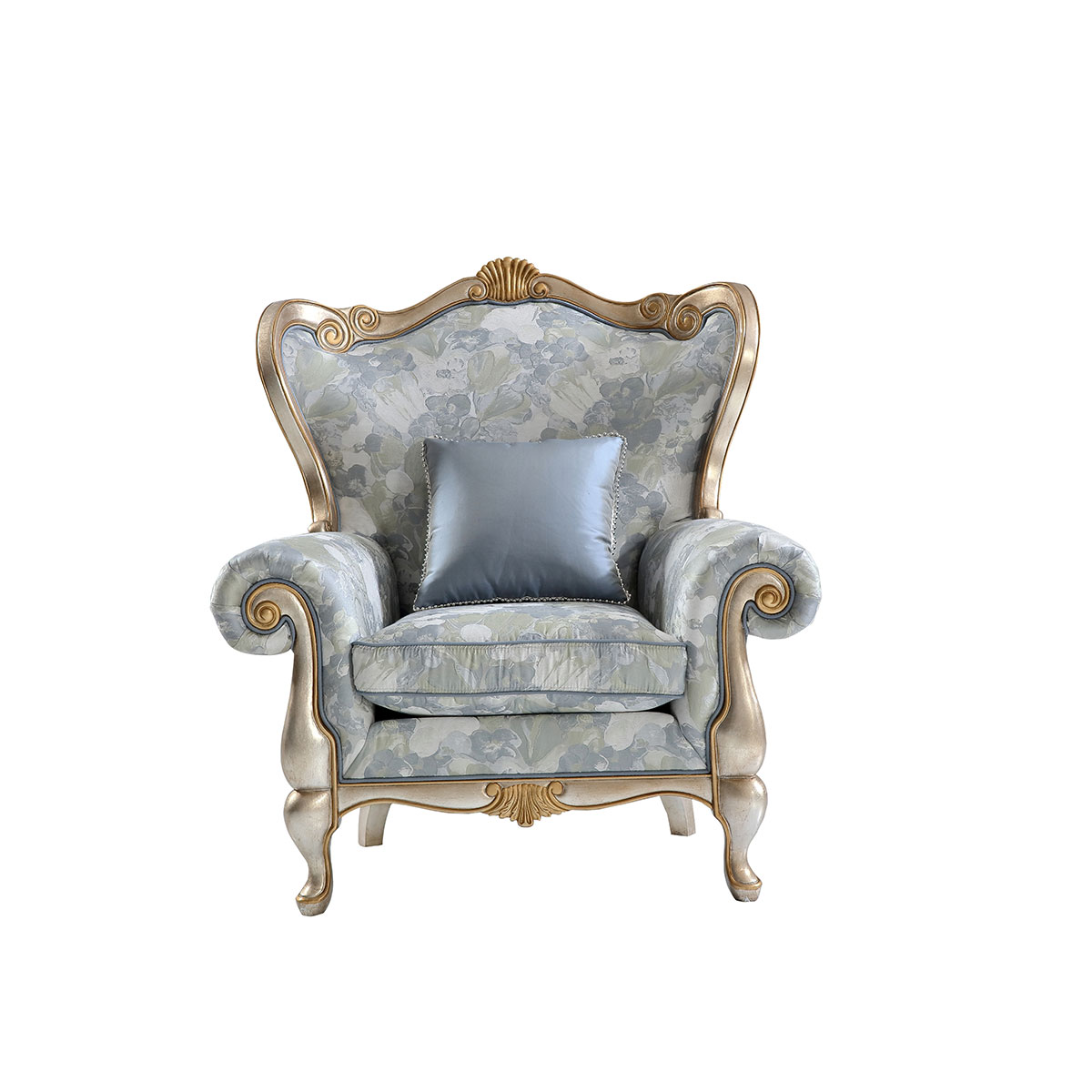 灵感来自于安妮女王时期 - wing-back chair的休闲椅,色调清新,天蓝和奶白色的搭配就如同蓝天白云带来与生俱来的亲近感,让人看起来心旷神怡。舒软高背屏带来五月花海风吹拂的舒适感,好生惬意。