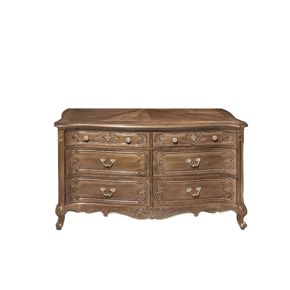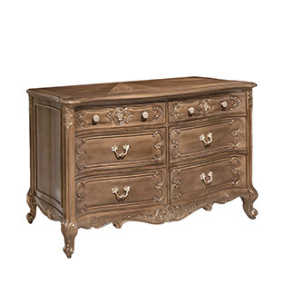 • 手工雕刻的花圃、藤蔓、阿坎瑟斯卷叶图案和弯脚设计 • 结实的连接技术 • 6个储物抽斗,右上斗为翻斗,内可置放电子器材,其余为储物抽斗;其底部采用经典硬木实木滑轨设计