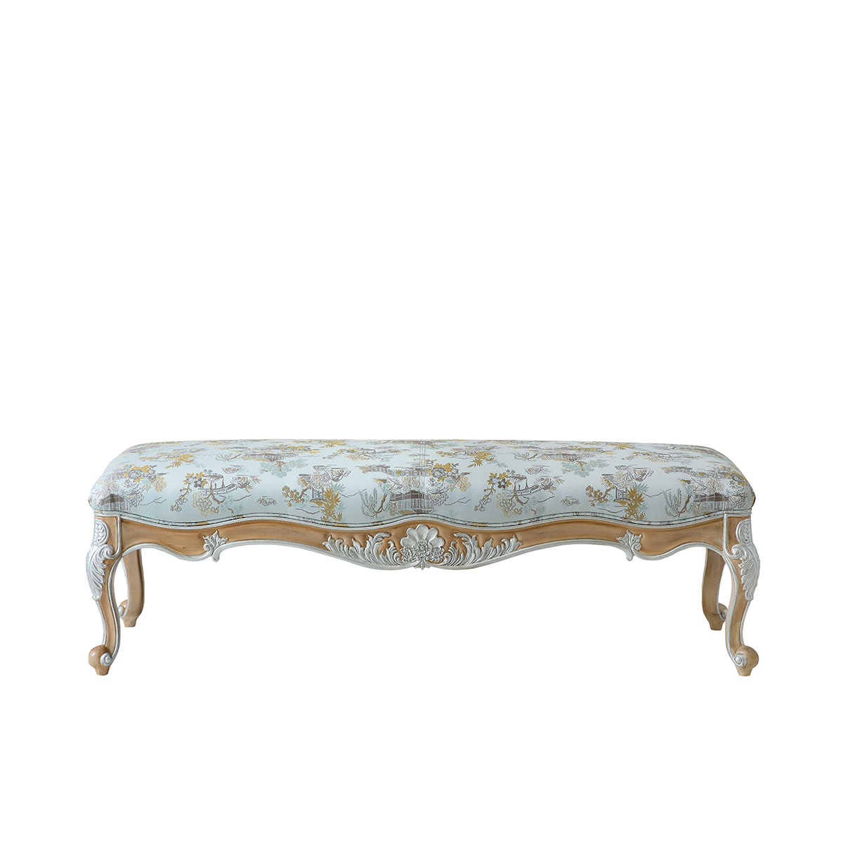 * 藤蔓和卷叶的实木雕刻,结实的连接技术; * 坐垫包有丰厚的填充物; * 提供多种面料可供选择;