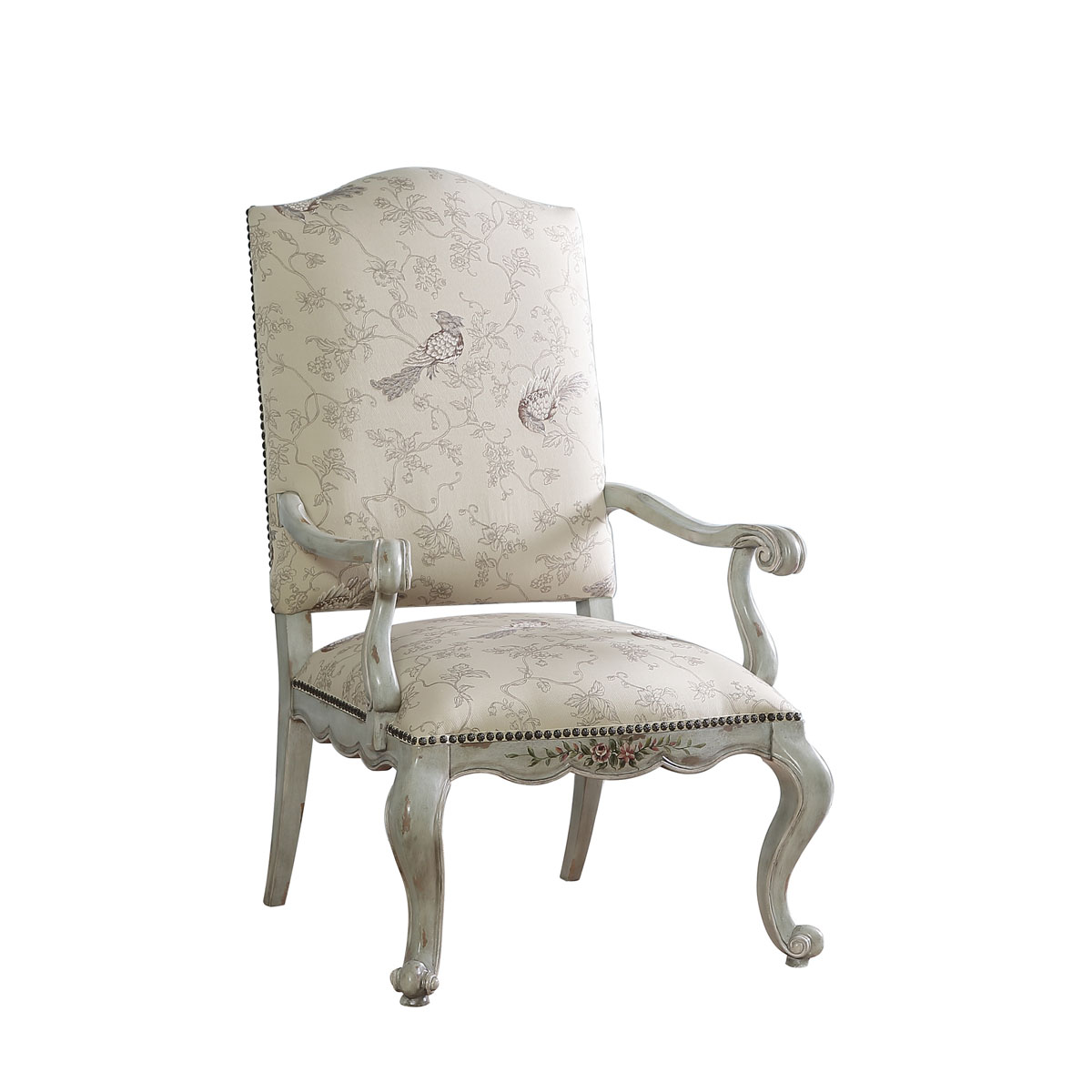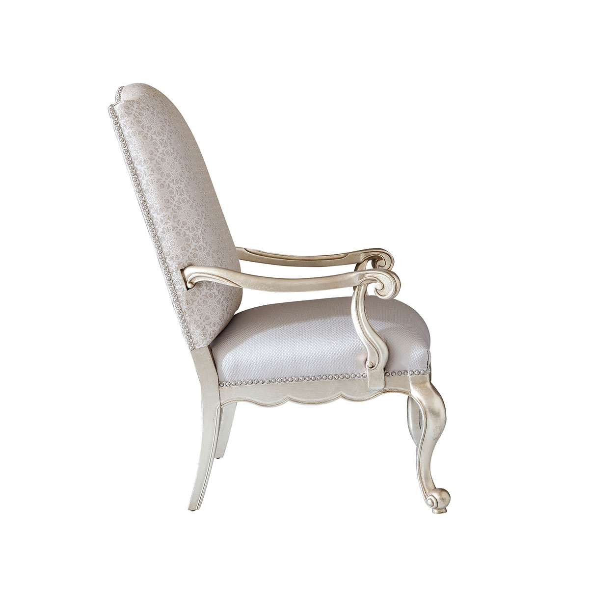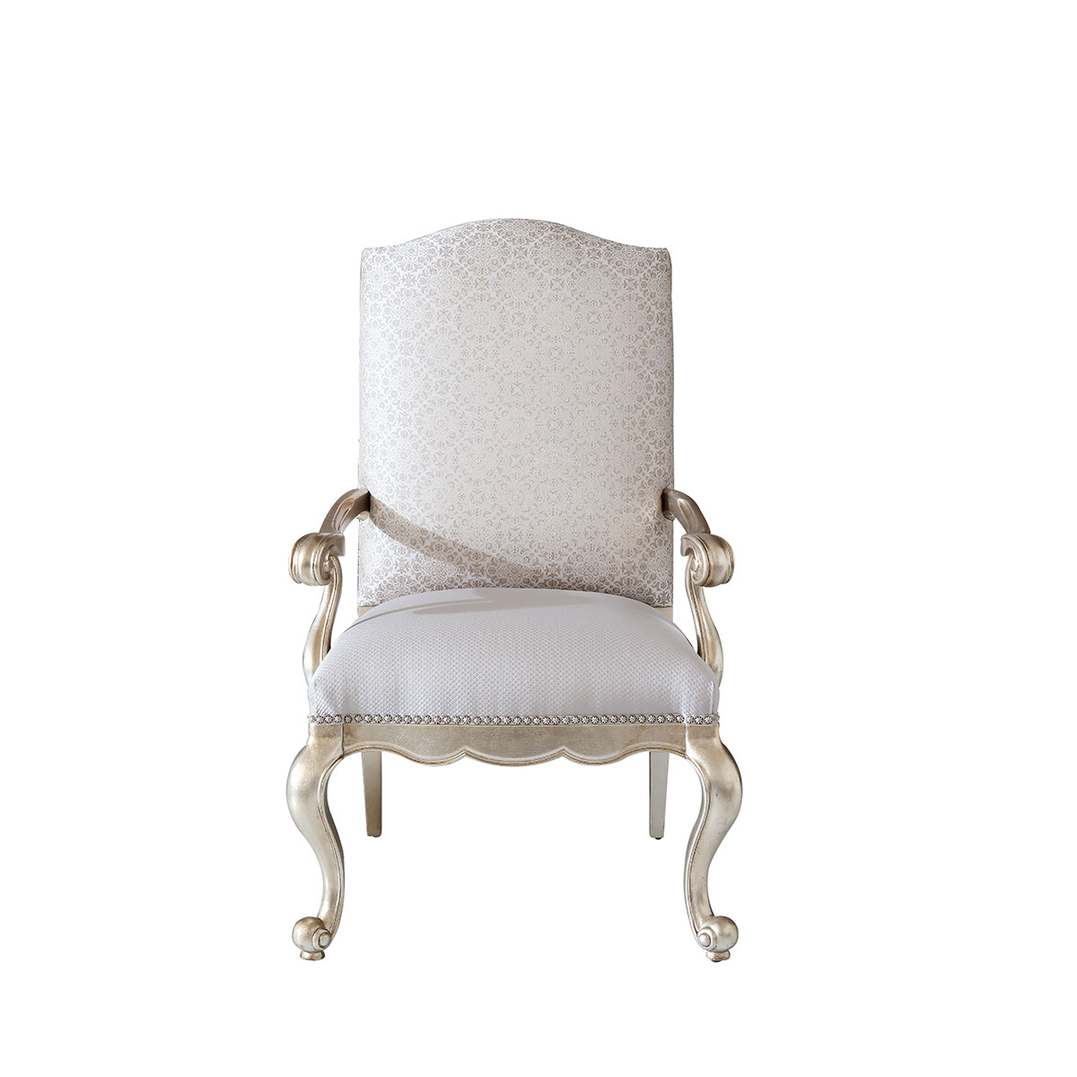 一款集合法式元素包括Camelback Silhouette(驼峰轮廓)造型、旋涡形扶手和S形弯脚的高背休闲椅,并配上触感舒适的布艺和包有丰厚的填充物坐垫和靠背。