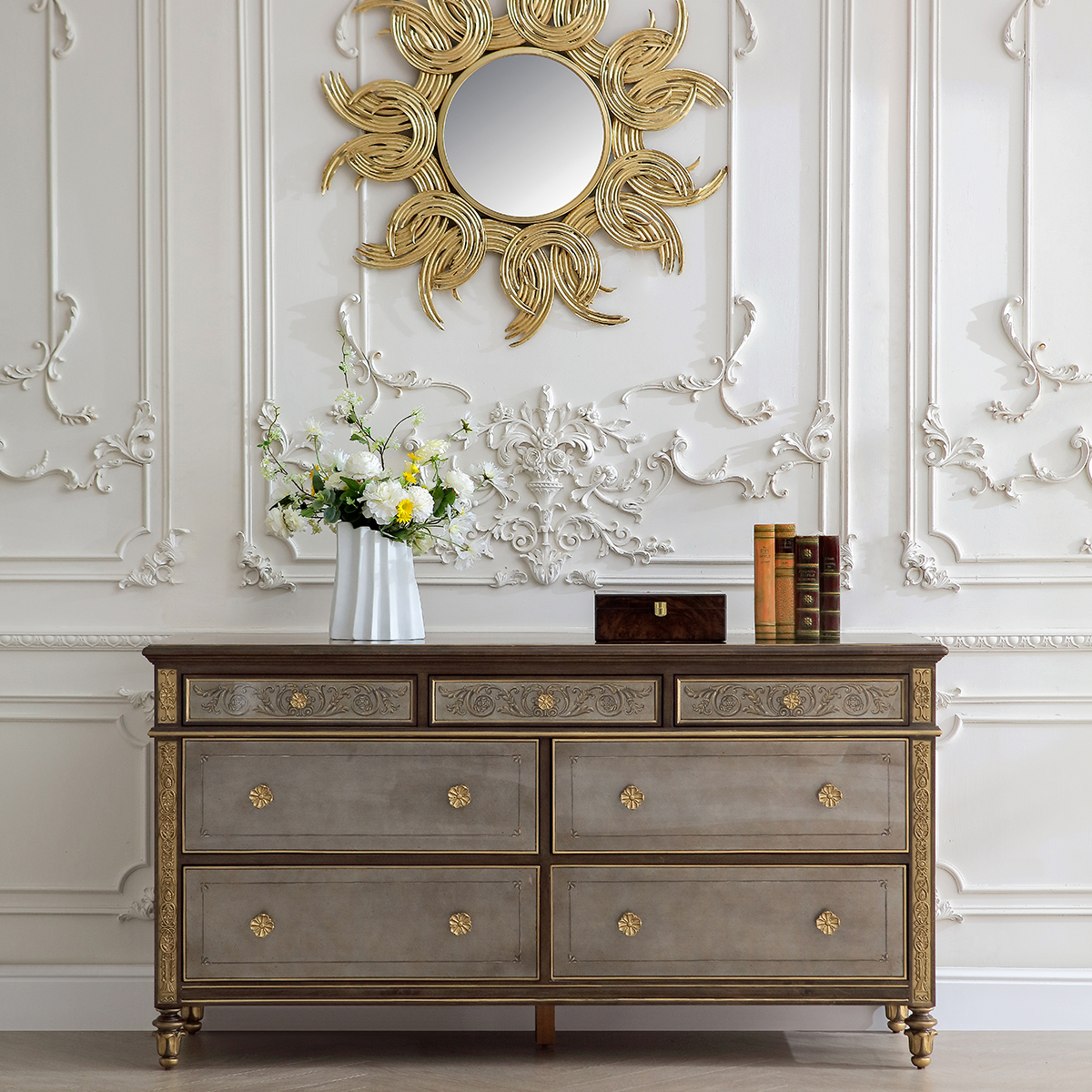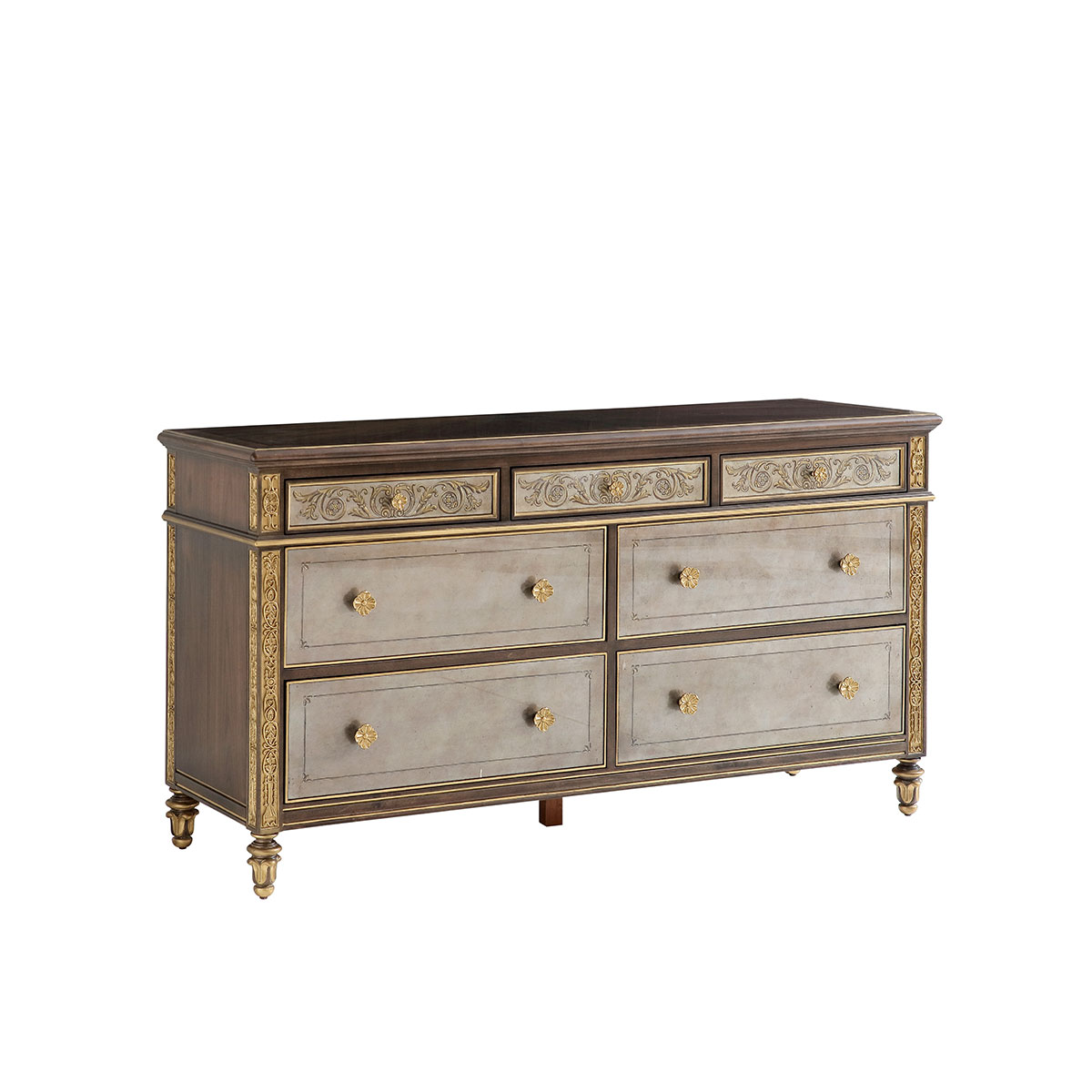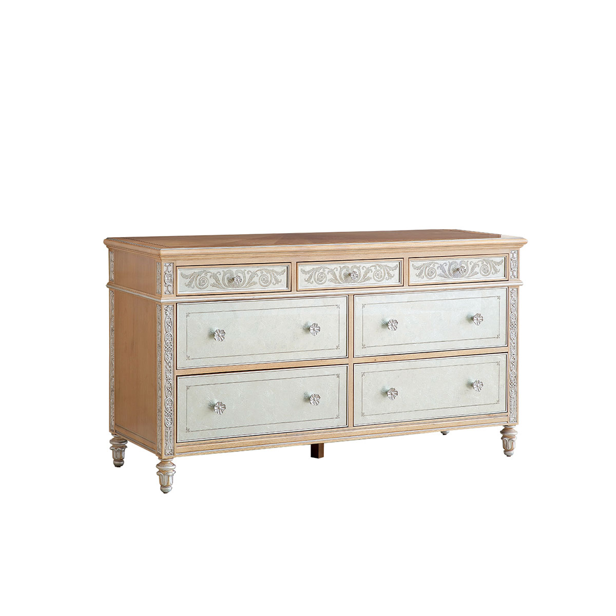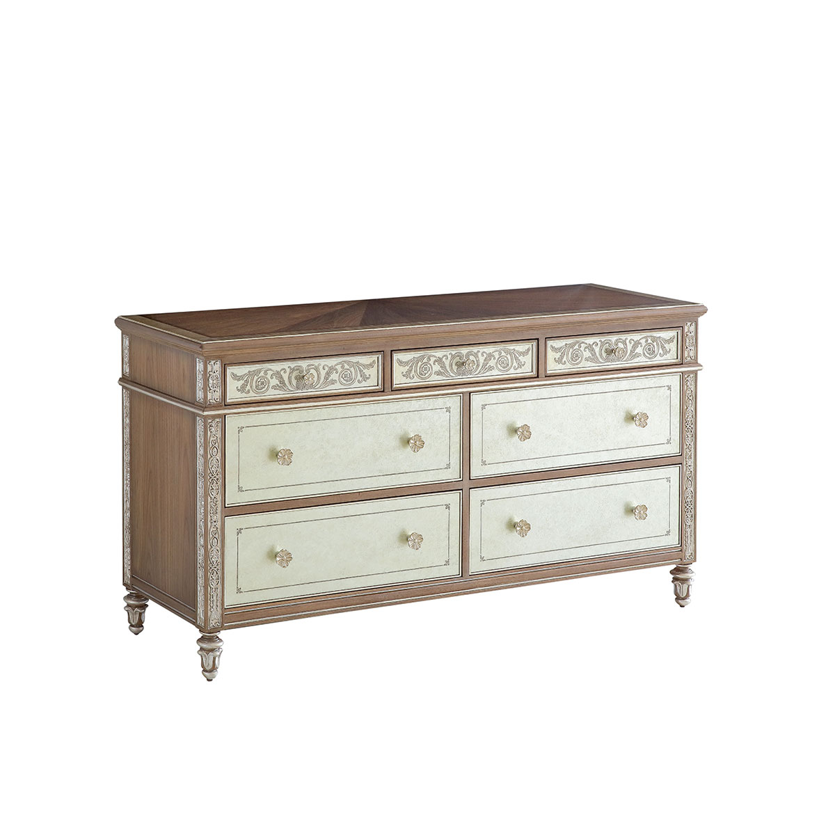 橡胶木+环保人造板+黑胡桃+艳阳花+樱桃木等木皮贴面+艺术玻璃