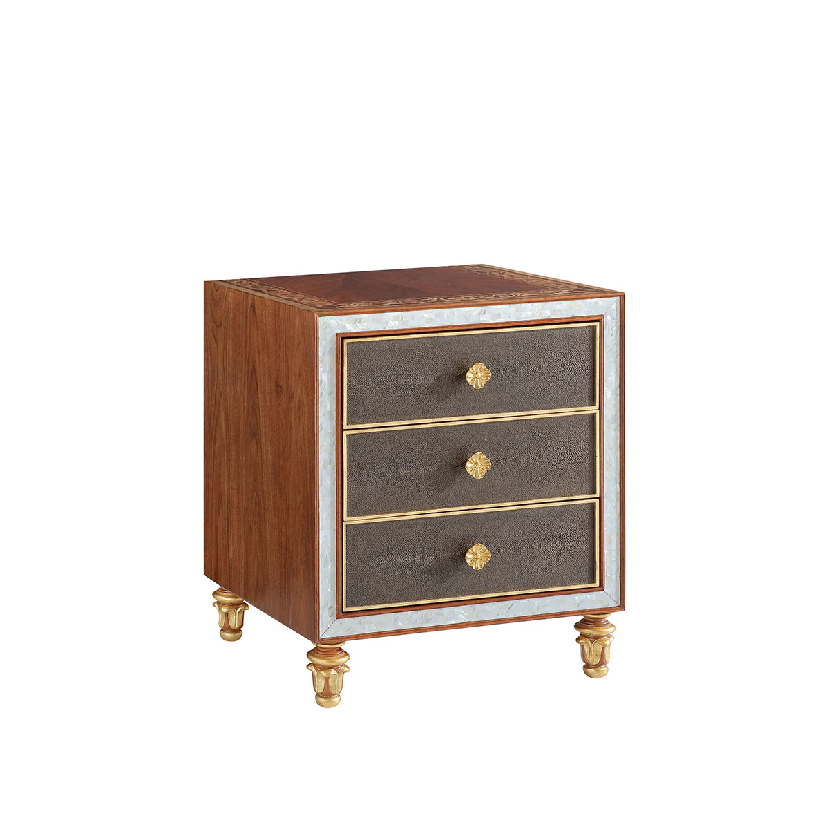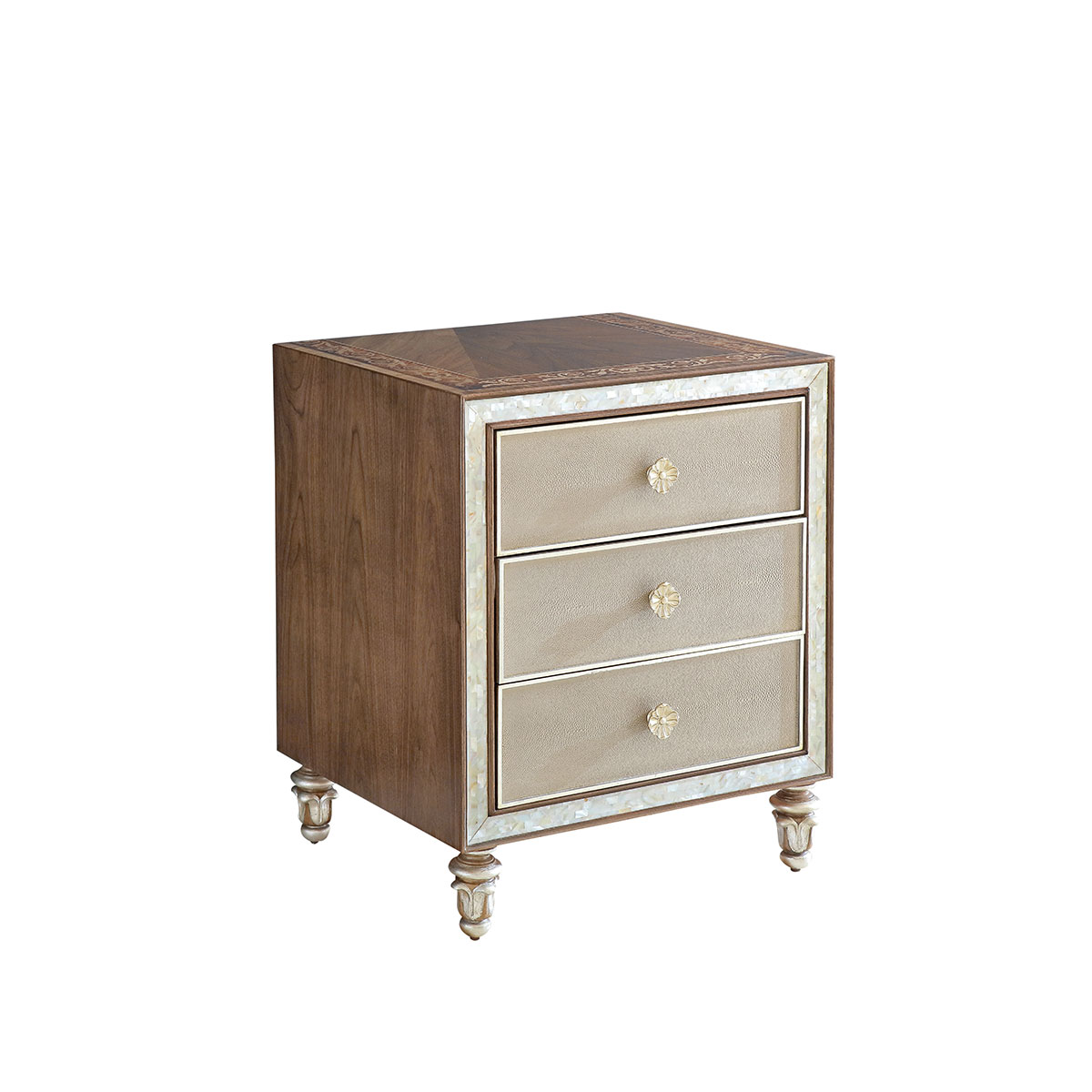 橡胶木+环保人造板+贝壳+黑胡桃+艳阳花+樱桃木等木皮贴面+皮革