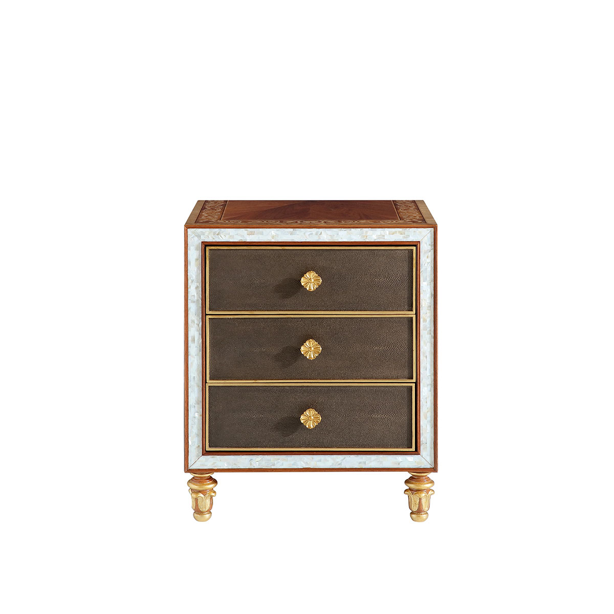 橡胶木+环保人造板+贝壳+黑胡桃+艳阳花+樱桃木等木皮贴面+皮革