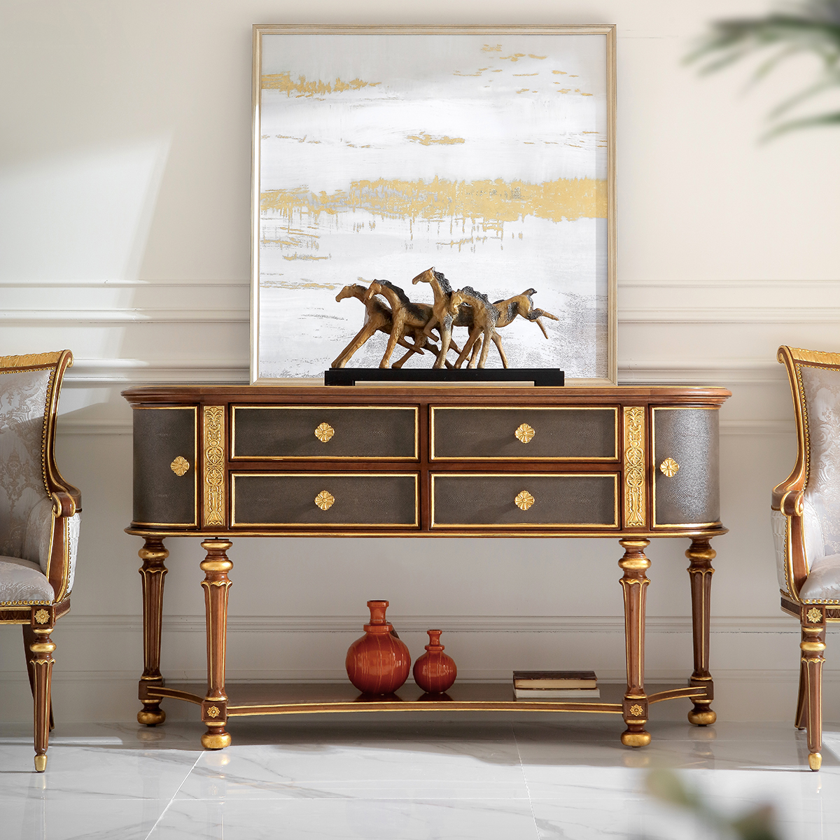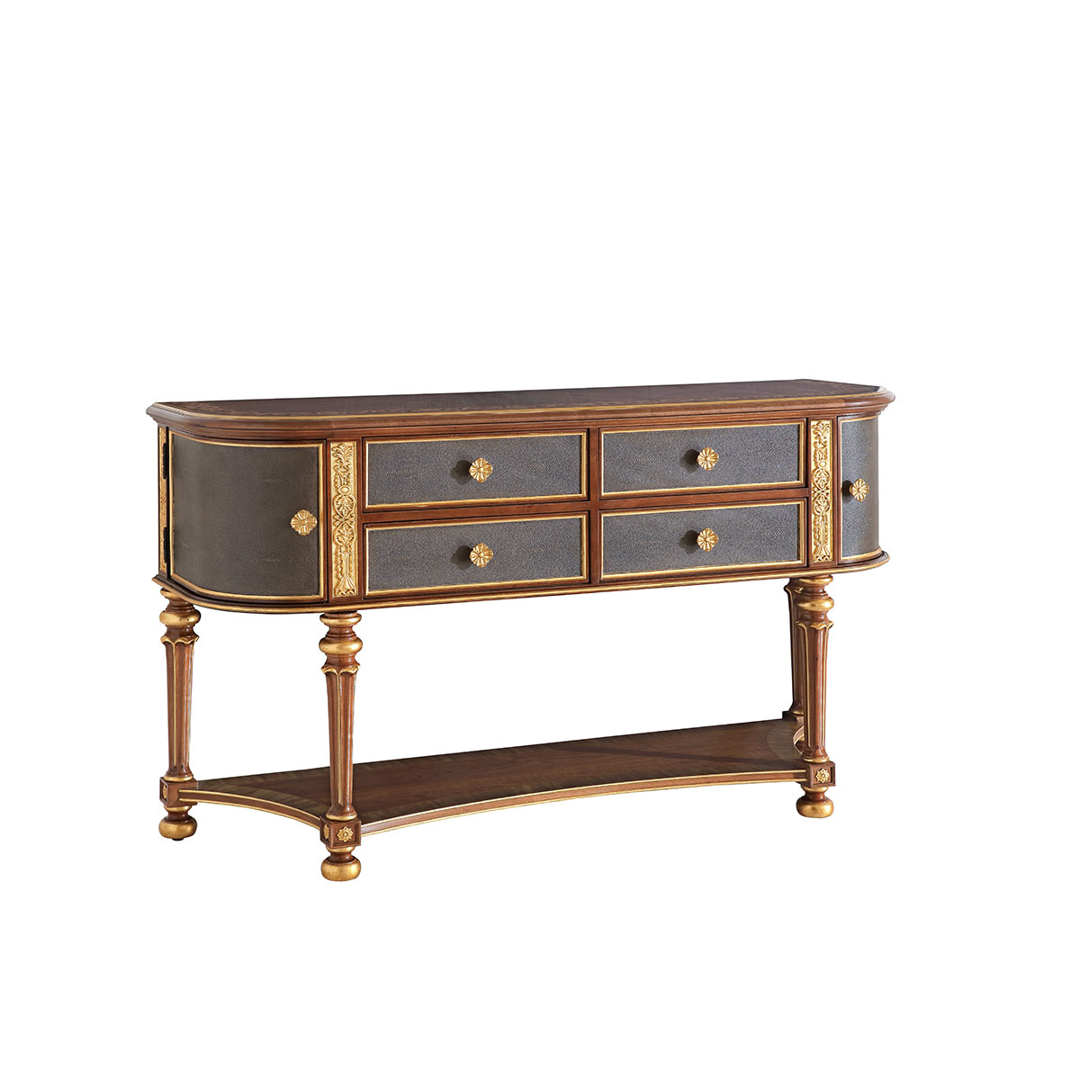 橡胶木+环保人造板+贝壳+黑胡桃+艳阳花+樱桃木等木皮贴面+皮革