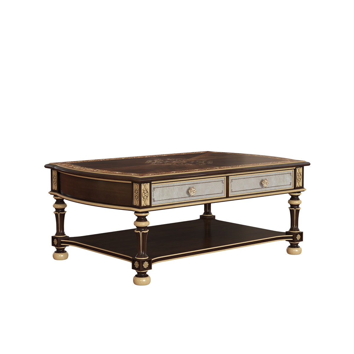 橡胶木+环保人造板+贝壳+黑胡桃+艳阳花+樱桃木等木皮贴面+皮革