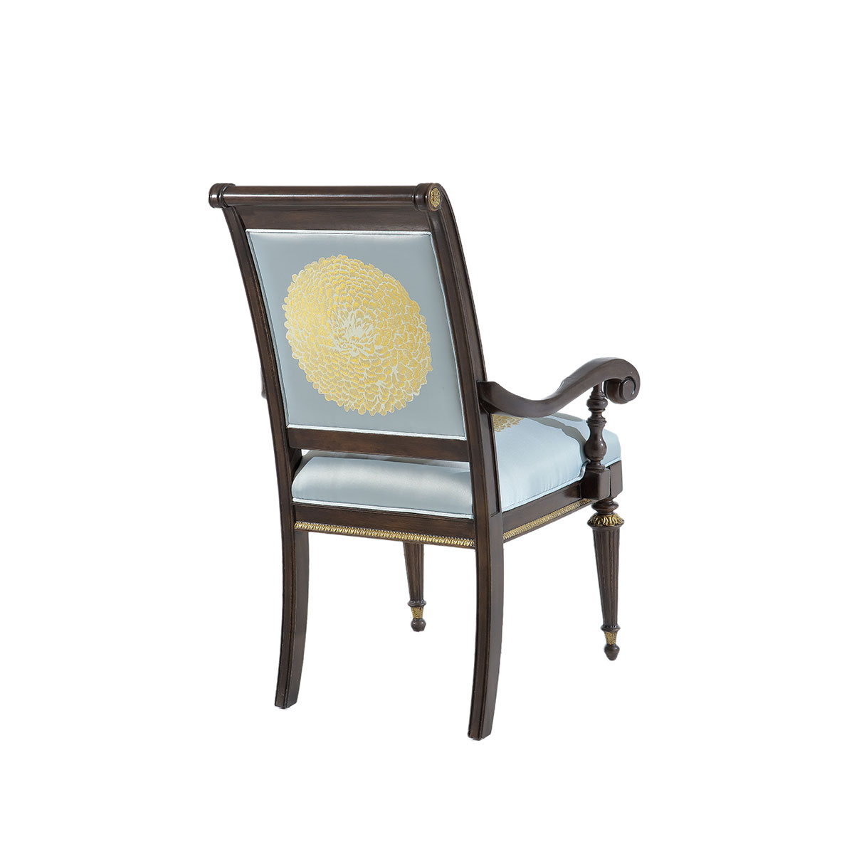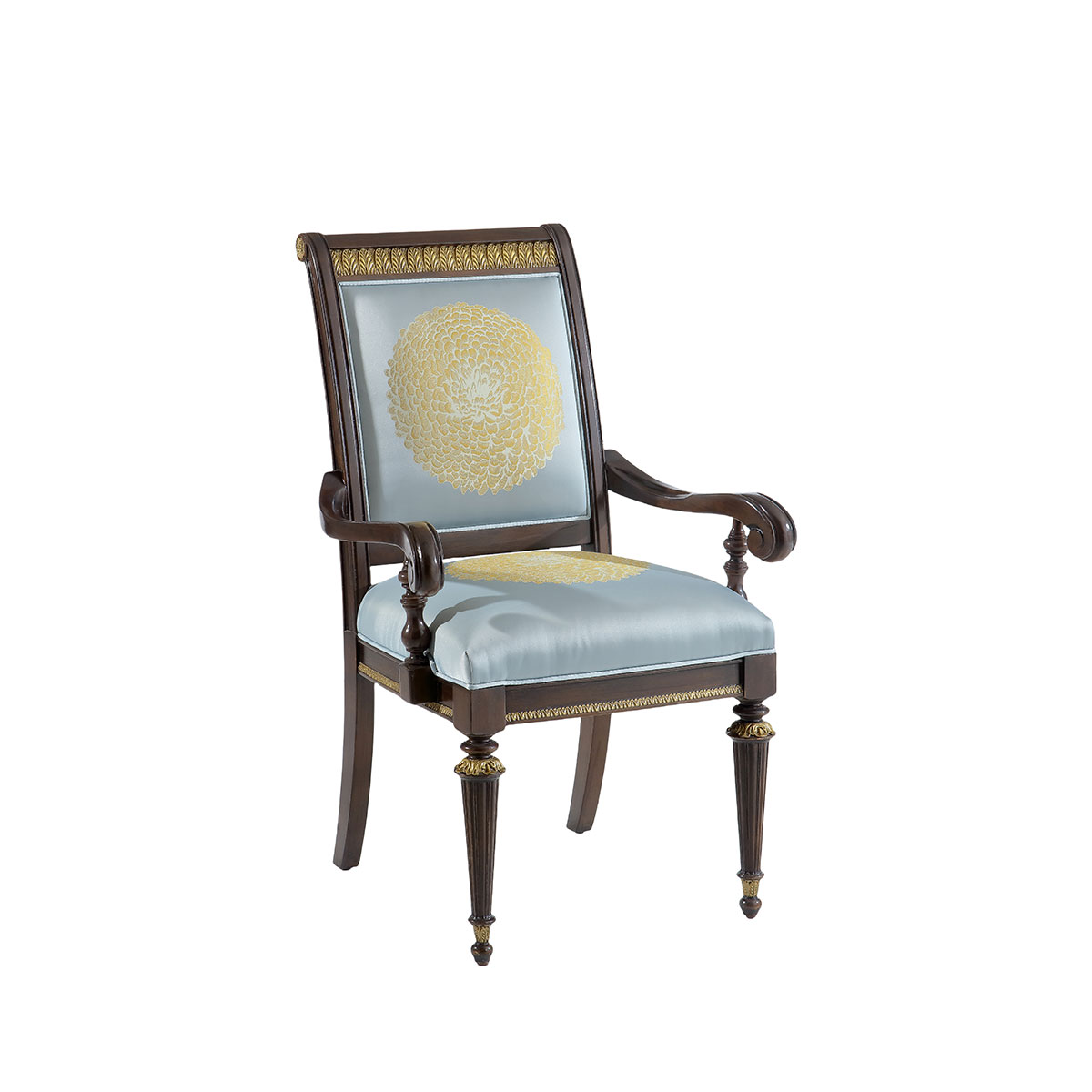 * 以17世纪意大利帝国EMPIRE风格为设计元素,结合意大利人重生活懂艺术的品位追求,使用代表荣誉的月桂叶型雕刻和锥形的腿脚设计、精致的手工雕刻细节和描金工艺,以显示王权的稳固地位;搭配以意大利国花 ——雏菊为意念的金菊图案,还有布艺和厚实柔软的填充物,精彩展现了意式悟空体育官网奢华绚丽而又极富艺术人文气息的迷人魅力。