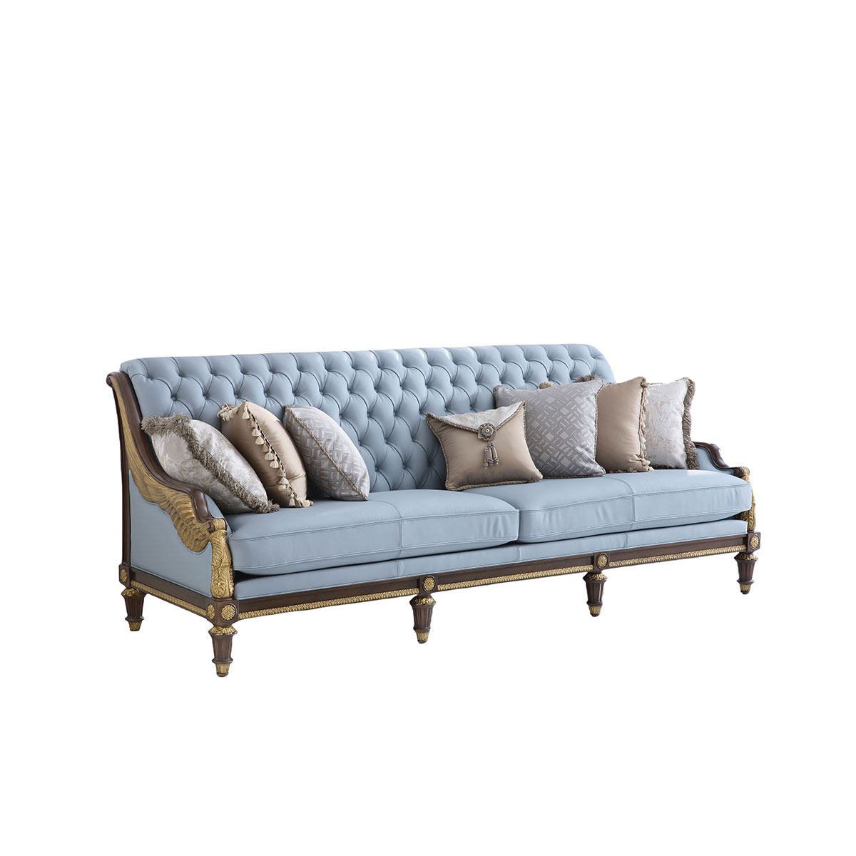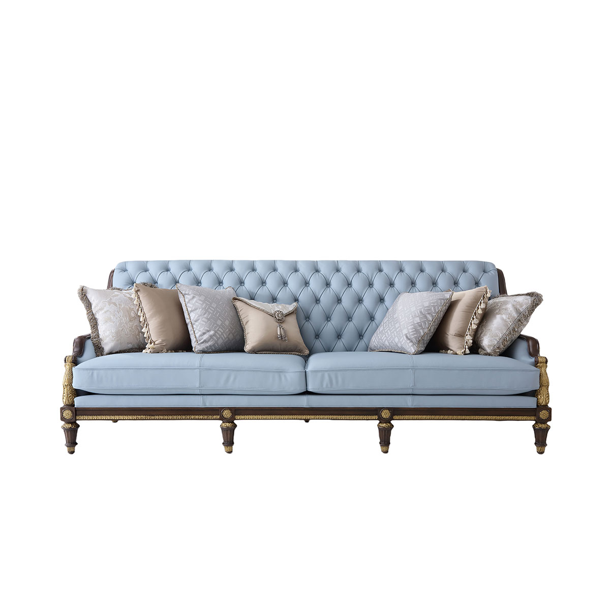 * 本款沙发可选择四片拆装(底座、左扶手、右扶手、后背) * 手工雕刻的工艺细节 * 细致的拉扣工艺和包有丰厚的填充物坐垫; * 标配抱枕:500*500 4个 430*430 1个 * 提供多种面料可供选择;