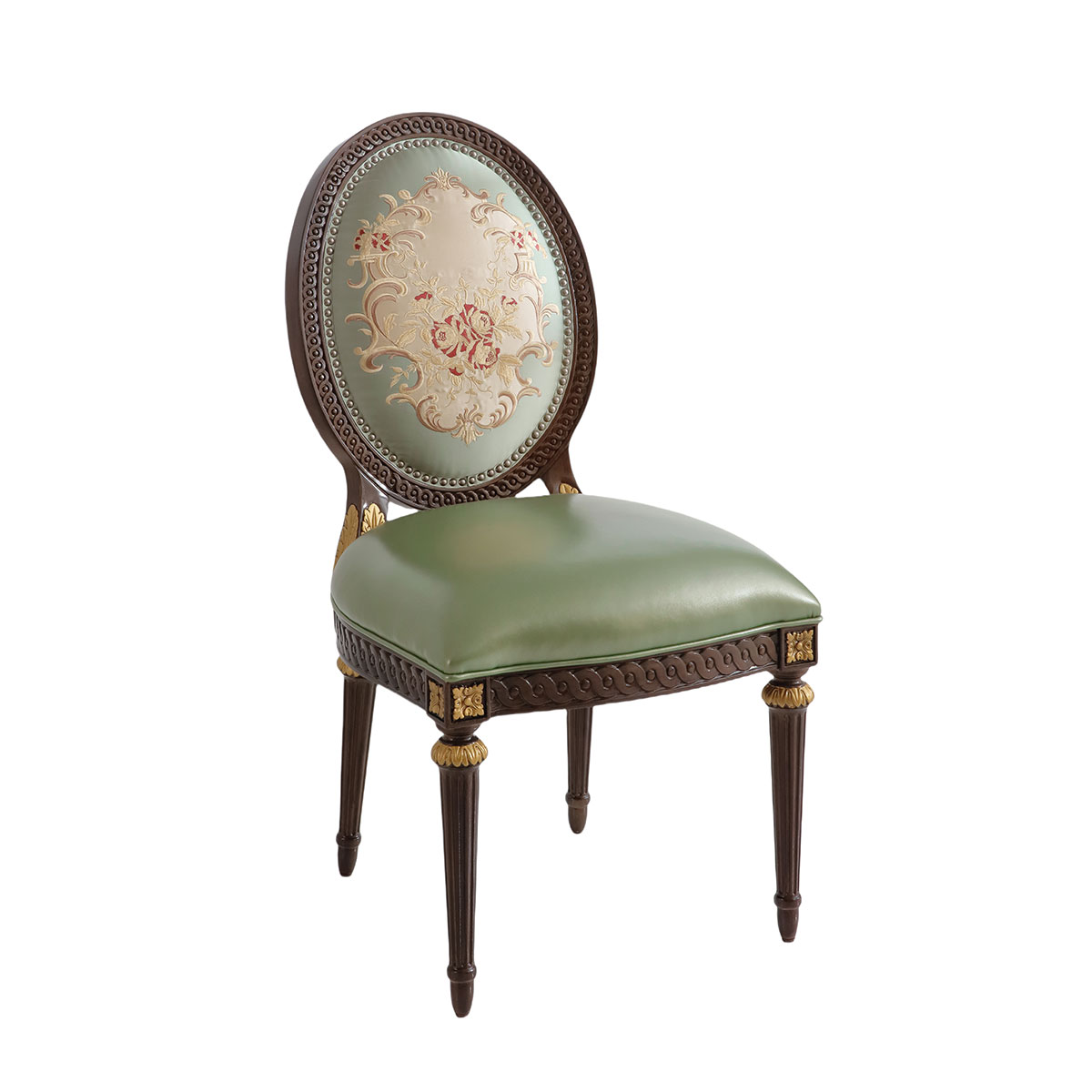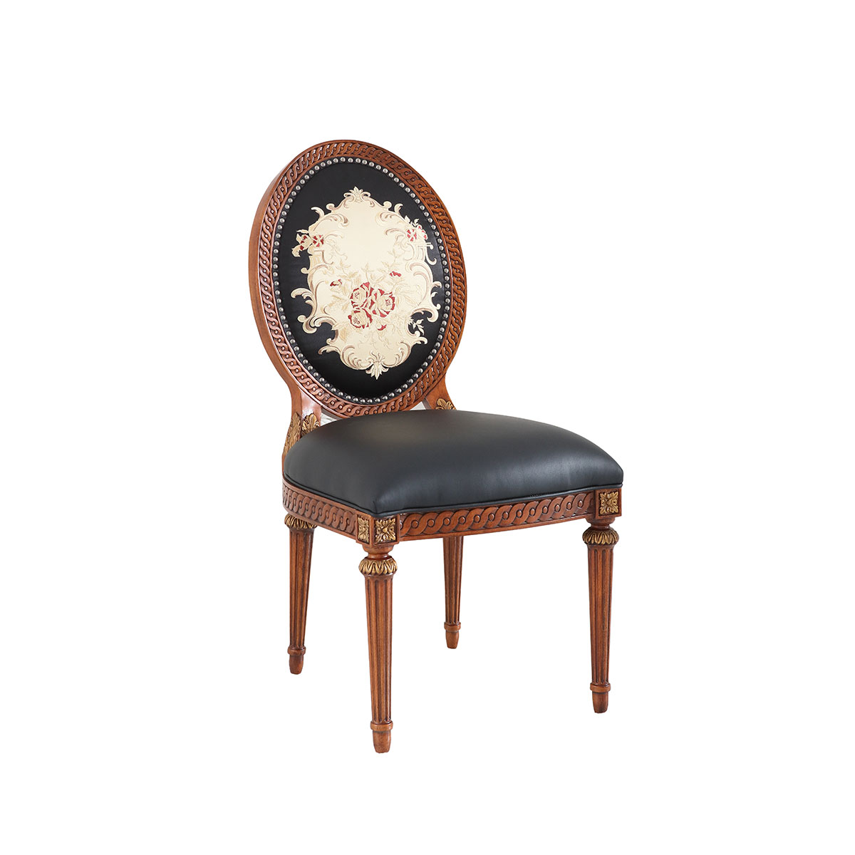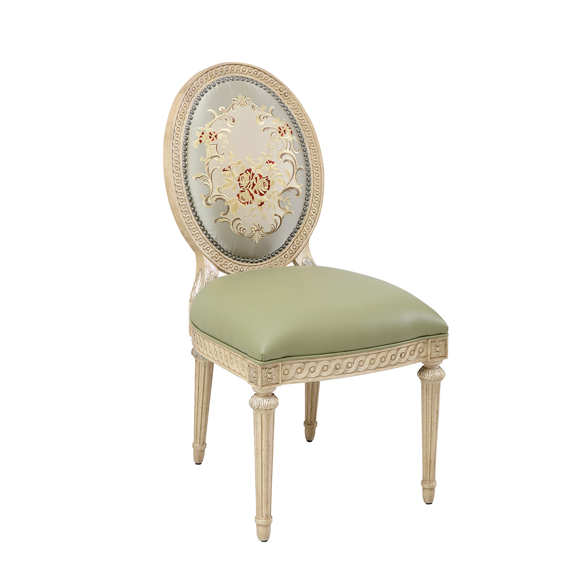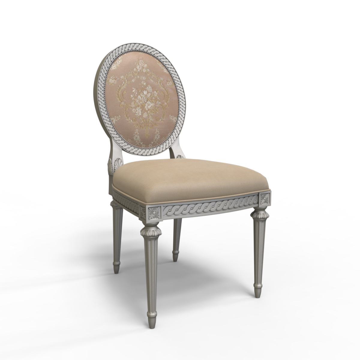 参考18世纪法国路易十六时期涂金扶手椅古董设计,并结合同时期的圆面背板设计。配上精致的连续雕刻和贴金铂工艺、锥形脚设计、触感舒适的布艺和包有丰厚的填充物坐垫和靠背。