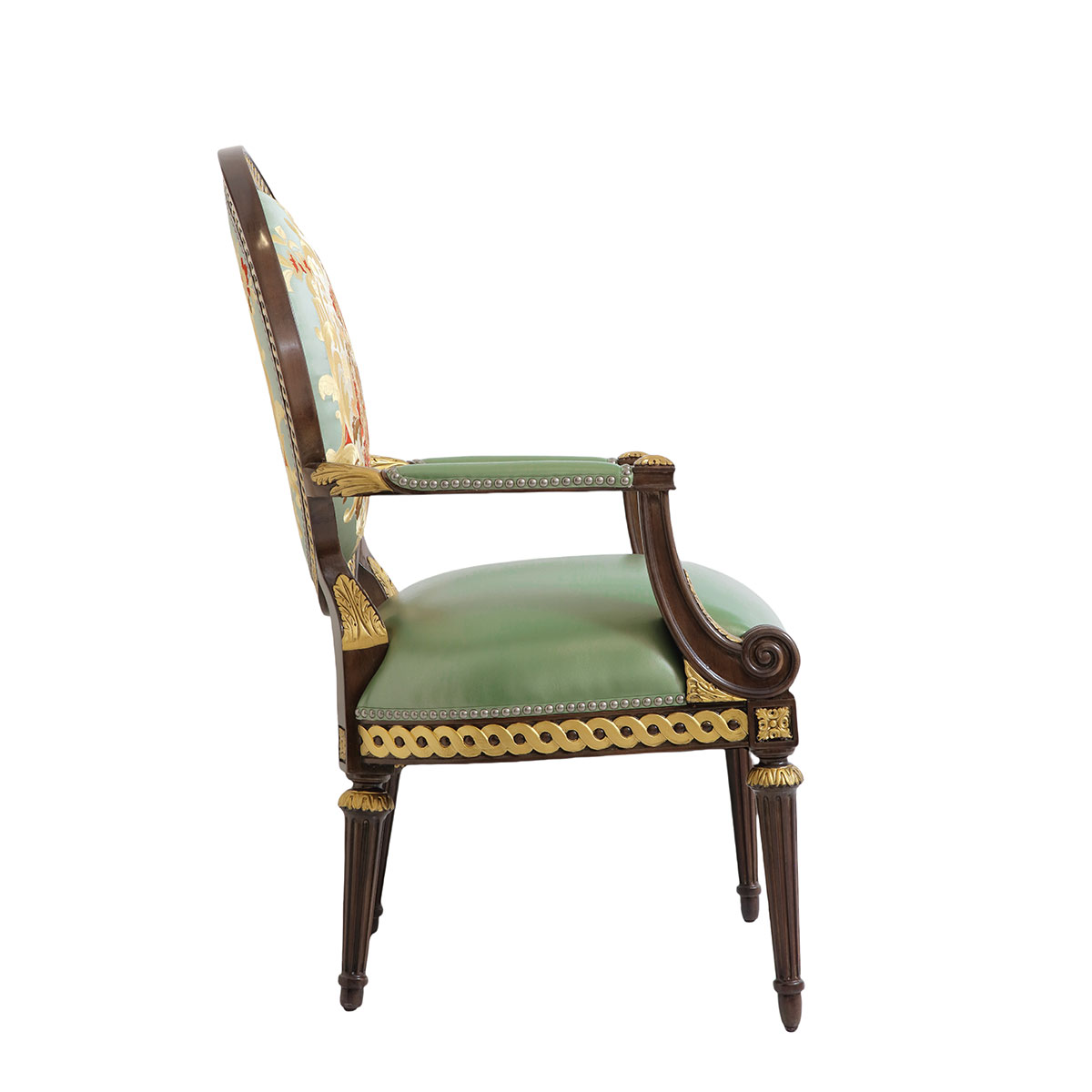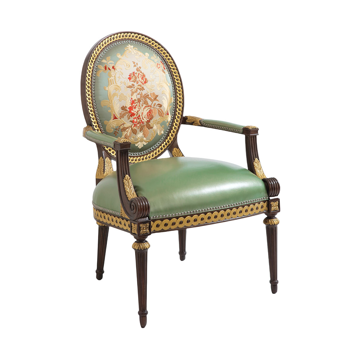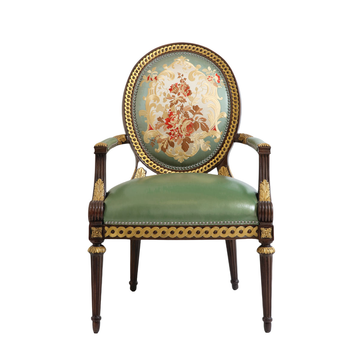 * 精细的手工雕刻配上仿金箔工艺结合十八道油漆工艺 * 坐垫和靠背包有丰厚的填充物; * 可拆装的软包座垫, * 提供多种面料可供选择