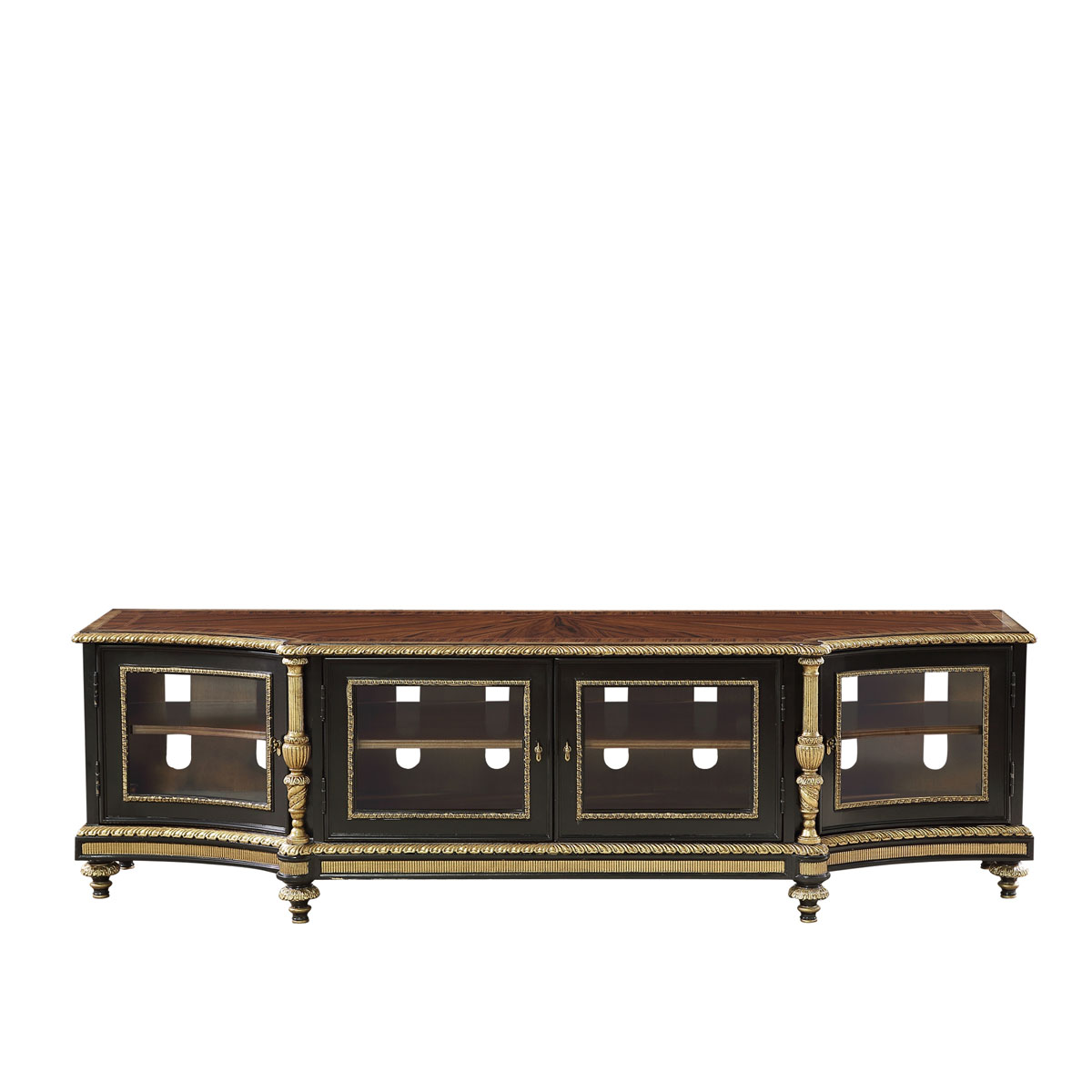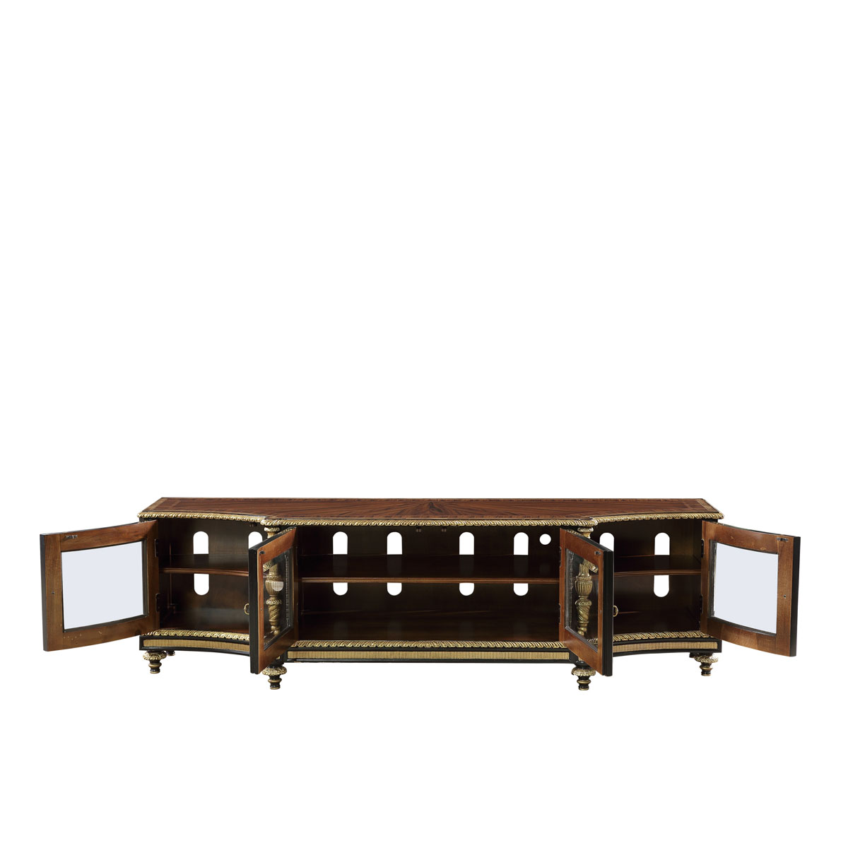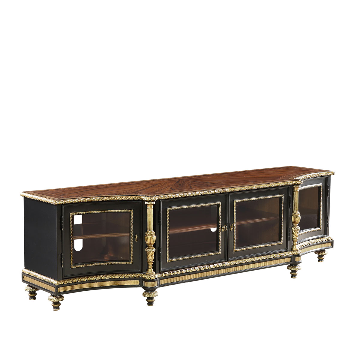 * 手工雕刻的工艺细节结实的连接技术18道以上的多步骤油漆工艺 * 四扇实木框玻璃门,门内各有一块可调层板; * 脚底部装有可调脚钉
