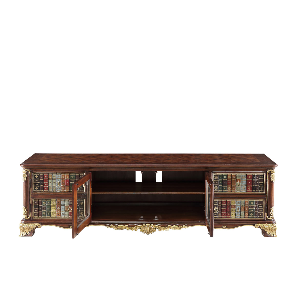 * 书本彩绘饰以仿古效果为豪门大宅增添了几许书卷情韵,配上华贵典雅的卷叶雕刻与金箔贴饰,精彩展现了皇室贵族以读书学习为身份地位象征的荣耀历史。