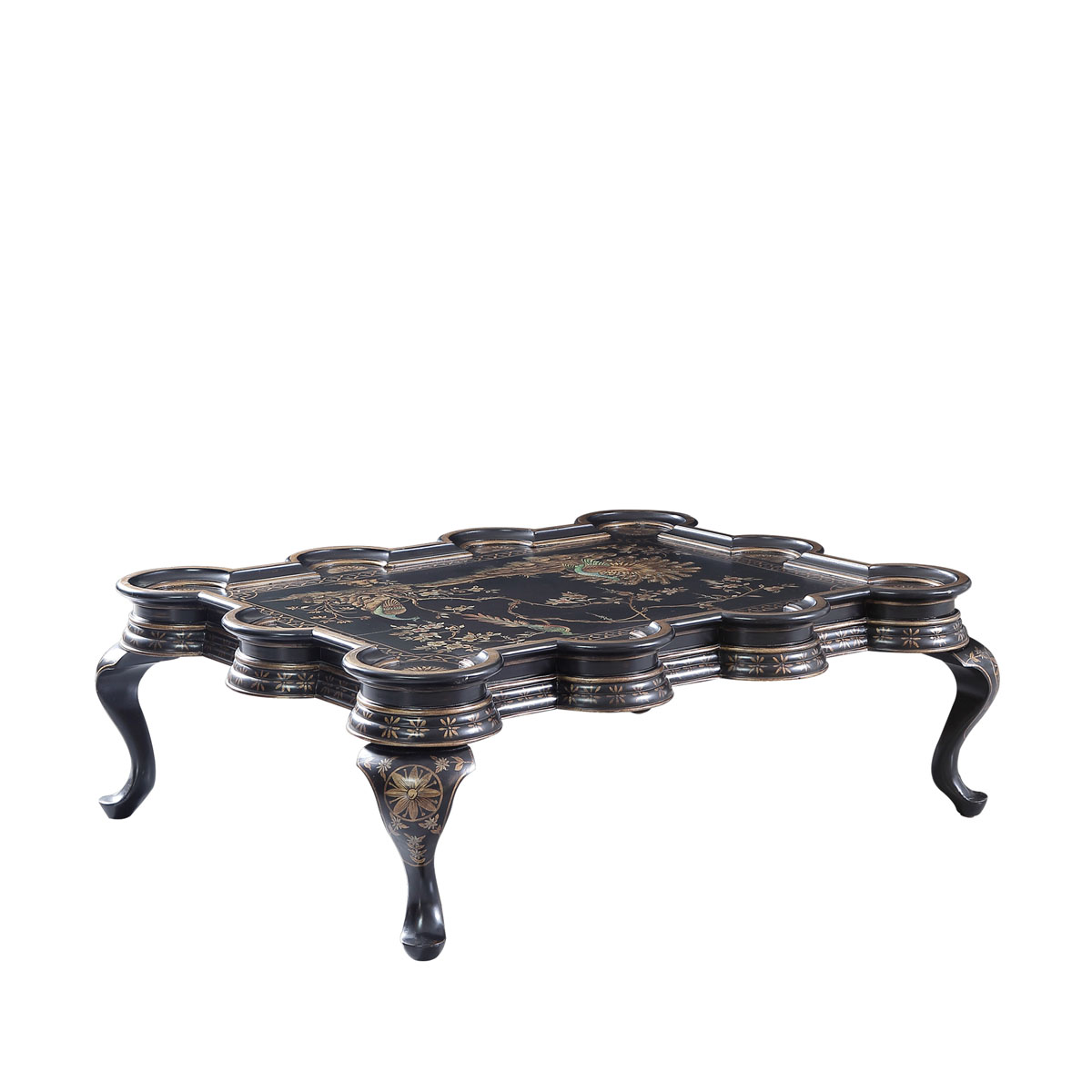 * 为表现英国皇室在中西方文化交流时期的重要地位,以英国温莎堡为设计元素。使用高贵的孔雀彩绘主题和安妮女王时期的弯腿设计,彰显了尊贵的古雅品味。搭配不规则的造型和极具中国情调的黑金色,经典再现了18世纪英国皇室热衷东方元素的家居文化潮流。