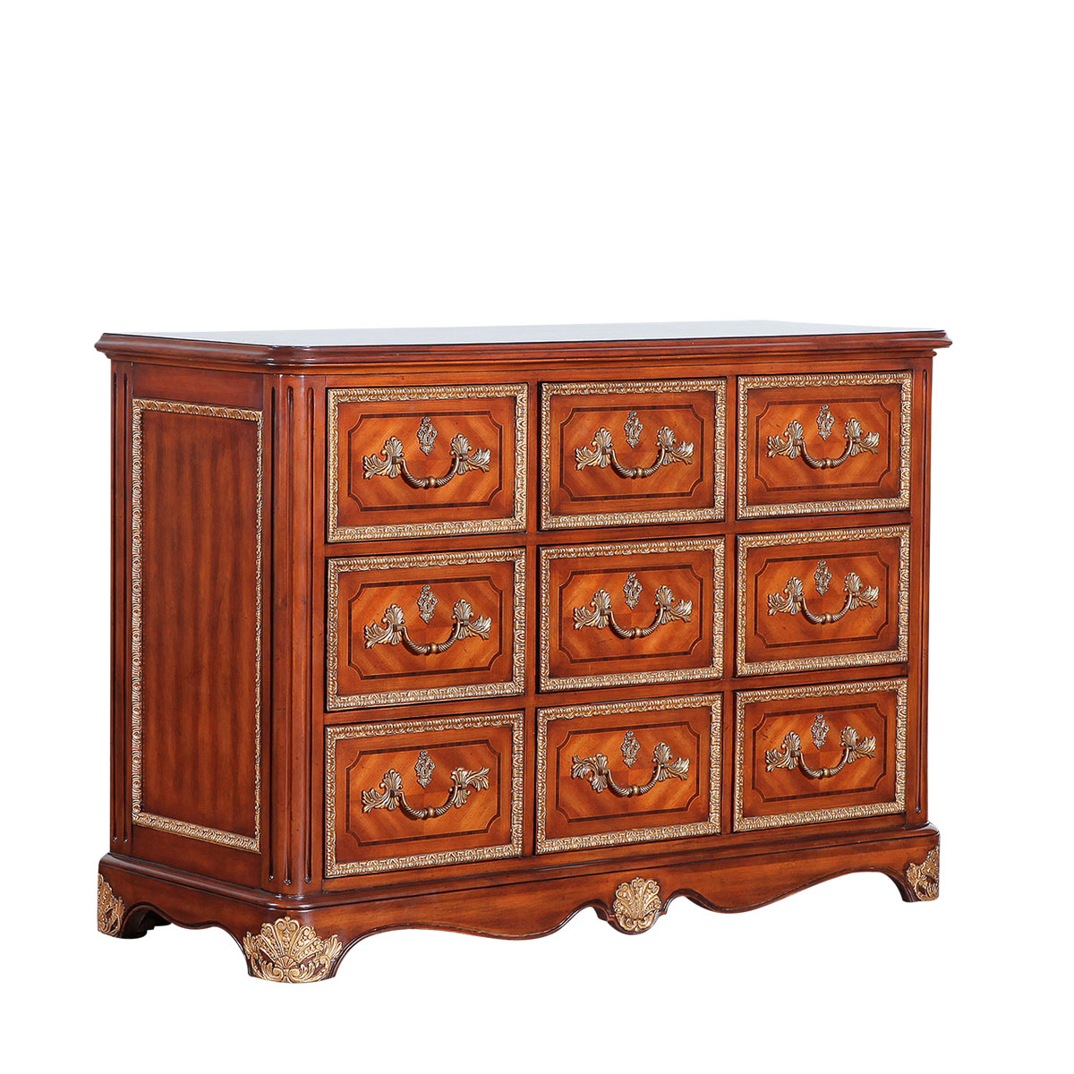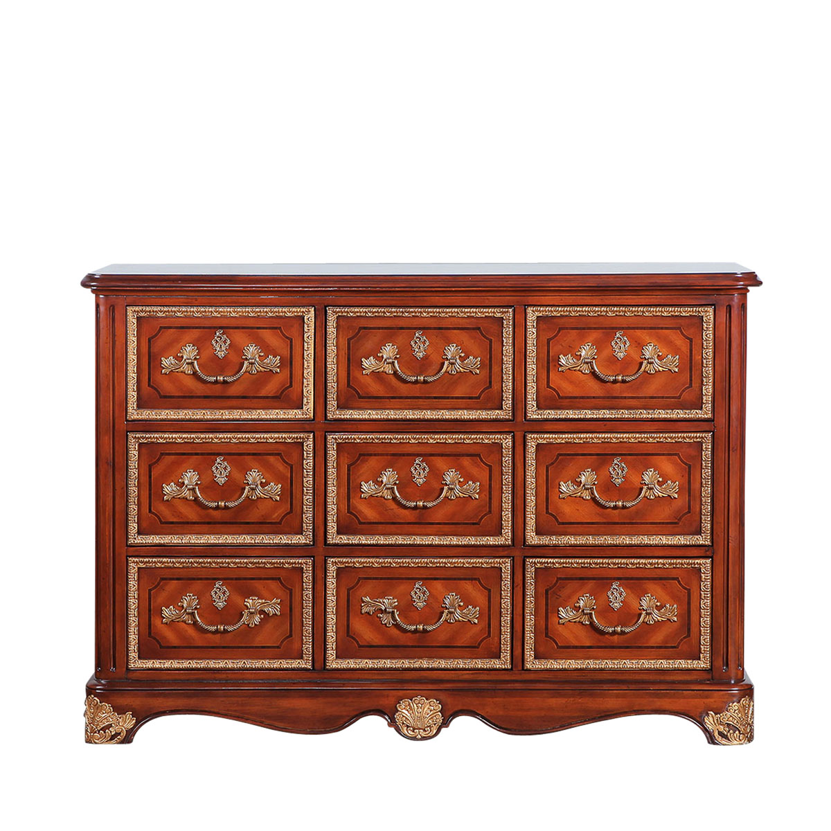* 仿金箔工艺配上精细的雕刻工艺 * 九个储物抽斗,采用硬木实木滑轨 * 脚底部装有可调脚钉