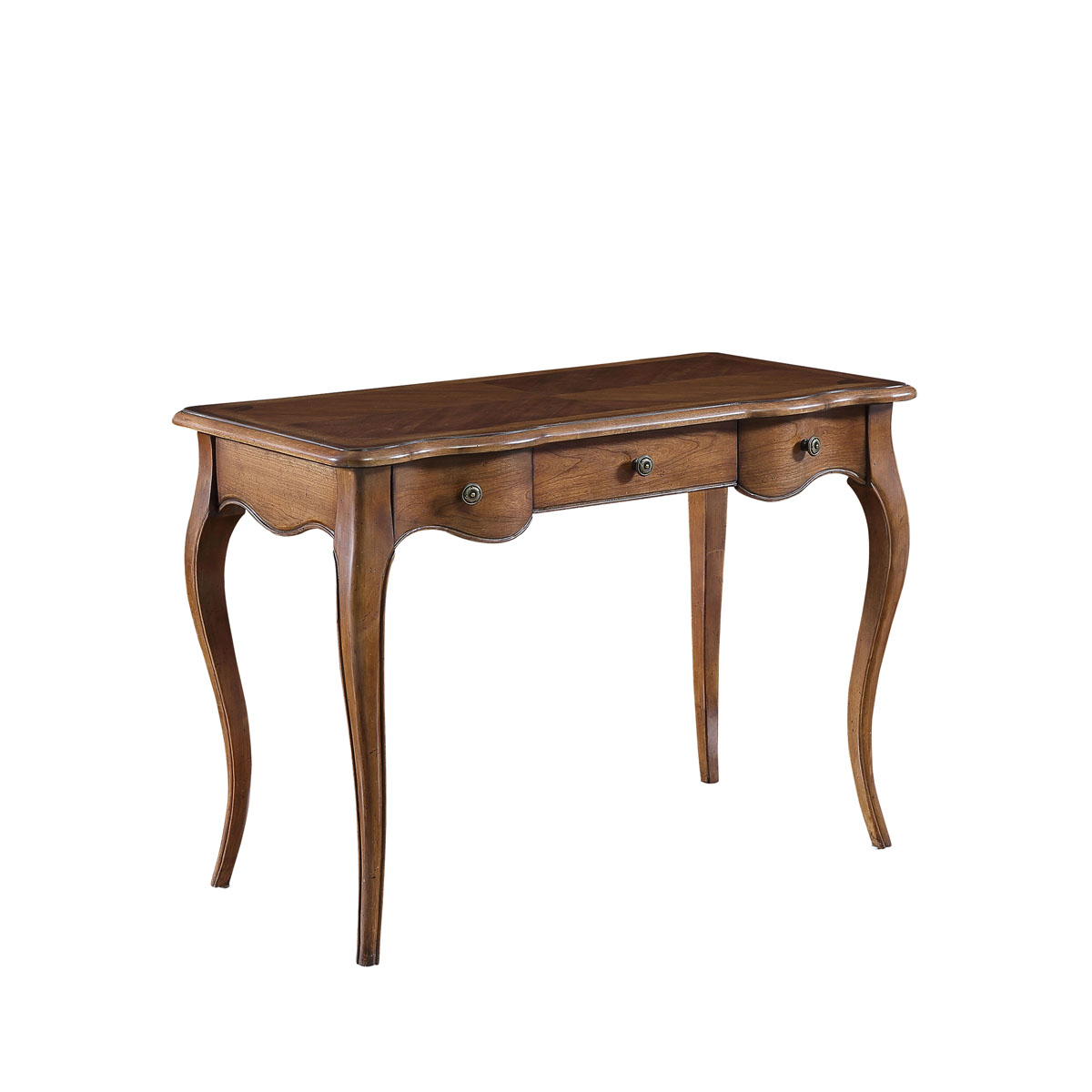 蜿蜒的裙板设计,仿佛林间的溪流,欢快地跳跃着,红棕木色泽古朴,大自然的气息扑面而来,勾勒出一个充满鸟语花香的世外桃源;洛可可风格弯腿设计带来法式的柔美。