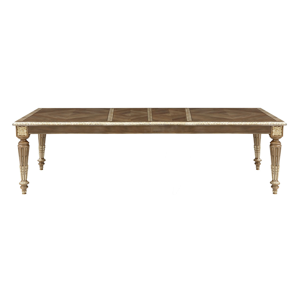 * 手工雕刻的工艺细节, 结实的连接技术; * 共两块伸板,伸板调节可适用多种户型; * 取掉一块伸板的尺寸为2108x1016x762mm * 取掉两块伸板的尺寸为1600x1016x762mm;