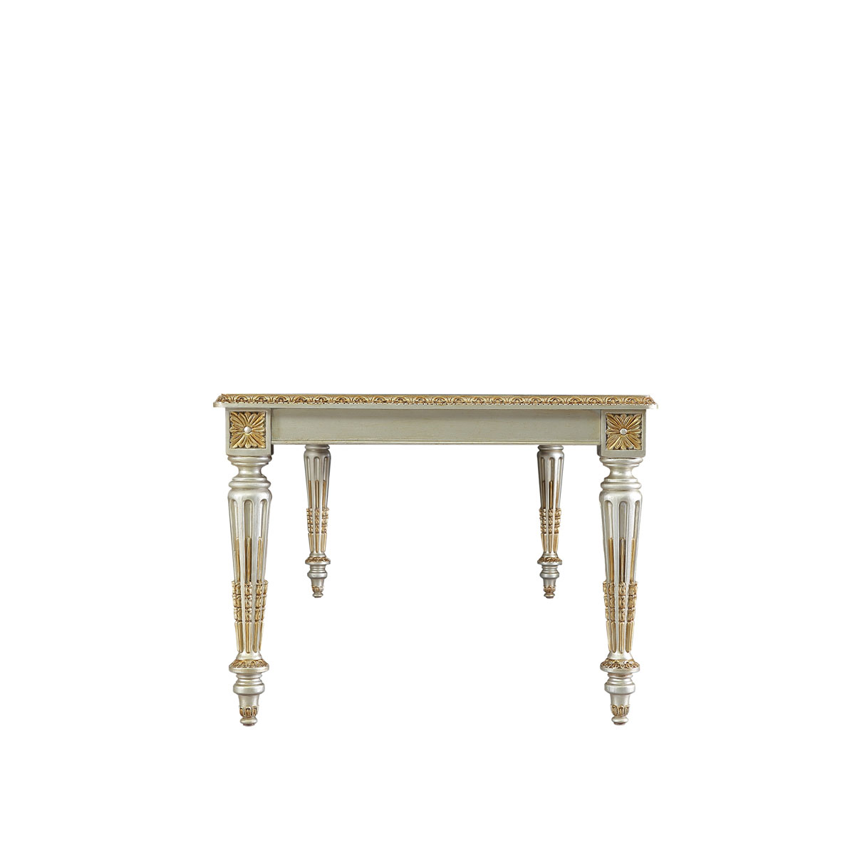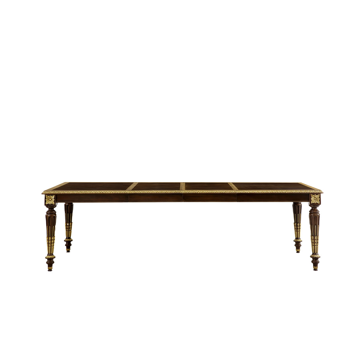 * 为表现法国路易时期的庄严和浪漫,以法国凡尔赛宫为设计元素。使用歌颂路易十四时期的太阳花雕刻,显示其王权稳固地位的锥形腿脚设计;配以钻石图案木皮贴面和贴金工艺,完美演绎了法式宫廷悟空体育官网的奢华尊贵.