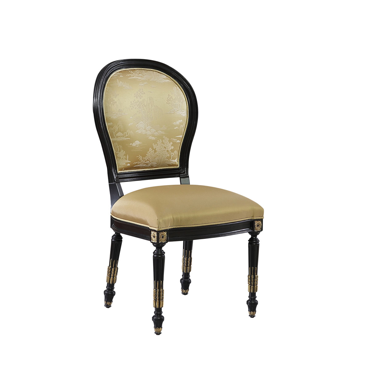 * 参考路易十六时期的古董造型设计,使用小提琴构造椅背和路易十六时期的建筑柱雕刻柱,配以精致的手工雕刻细节和涂金工艺、舒适的布艺面料和厚实柔软的填充物,是豪华系列凡尔赛玫瑰法式单椅的特色。