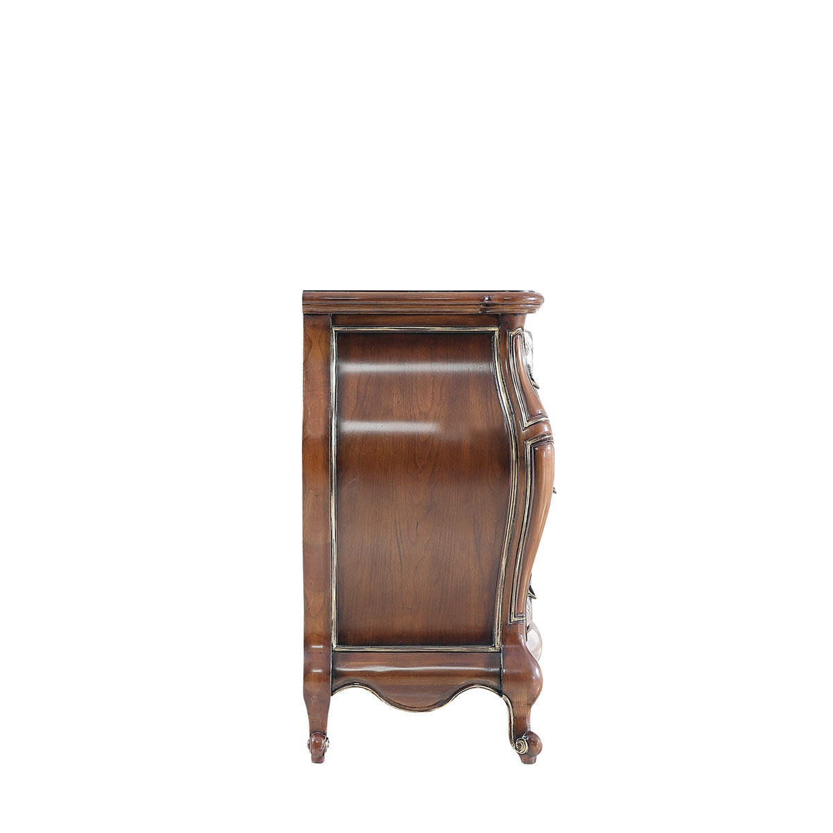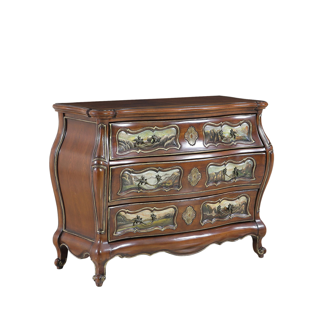 * 浪漫的香颂犹如历史悠久的杜乐丽花园般,每每散发著其独特的韵味。为表现杜乐丽花园的休闲惬意,使用花环、藤蔓和卷叶造型的实木手工雕刻;配以木皮贴面和古铜色的树叶环形拉手,营造出浓情蜜意的法式生活空间。