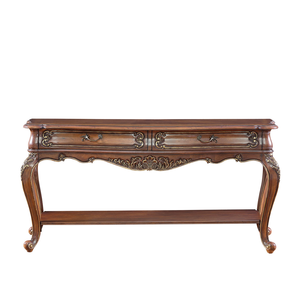 * 手工雕刻的藤蔓、阿坎瑟斯卷叶图案和弯脚设计; * 两个储物抽斗,其底部采用经典硬木实木滑轨设计; * 底部的层板可放置家庭装用品; * 底部装有可调整脚钉;
