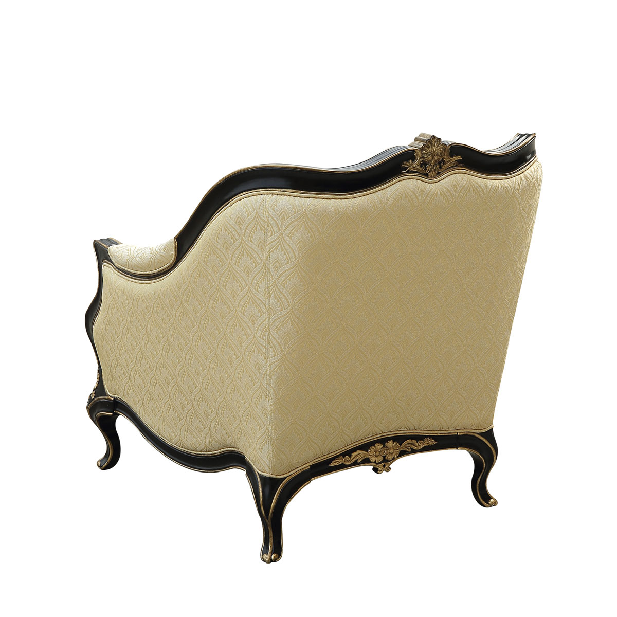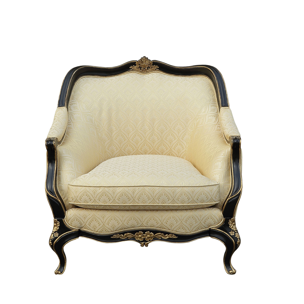 * 从法国十八世纪初摄政时期的风格中汲取灵感制作而成,采用了同风格的弯脚设计,阿坎瑟斯叶雕刻造型和金箔贴饰,再饰以中国山水图案的丝绸和包有丰厚的填充物坐垫和靠背,使得这款沙发闪耀着华丽高贵的光环。