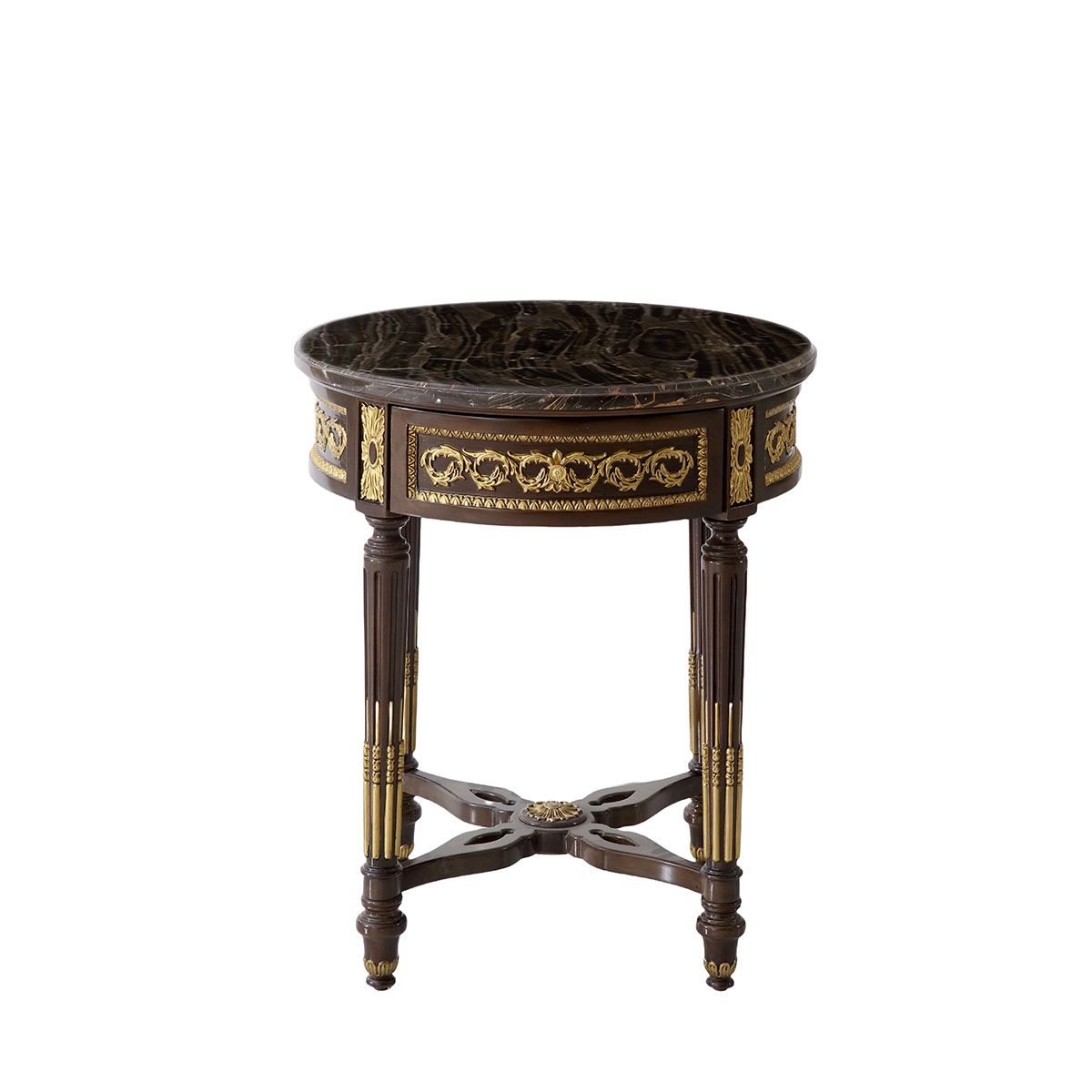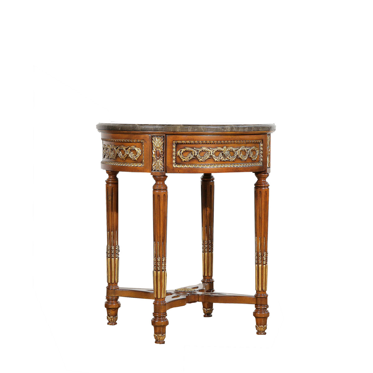 * 为表现法国路易时期的庄严和浪漫,以法国凡尔赛宫为设计元素。使用歌颂路易十四时期的太阳花连环雕刻,显示其王权稳固地位的锥形腿脚设计;配以哥特式建筑中的大圆窗骨架设计、珍稀大理石台面、建筑柱雕刻与绚丽的贴金工艺,完美演绎了法式宫廷悟空体育官网的奢华尊贵。