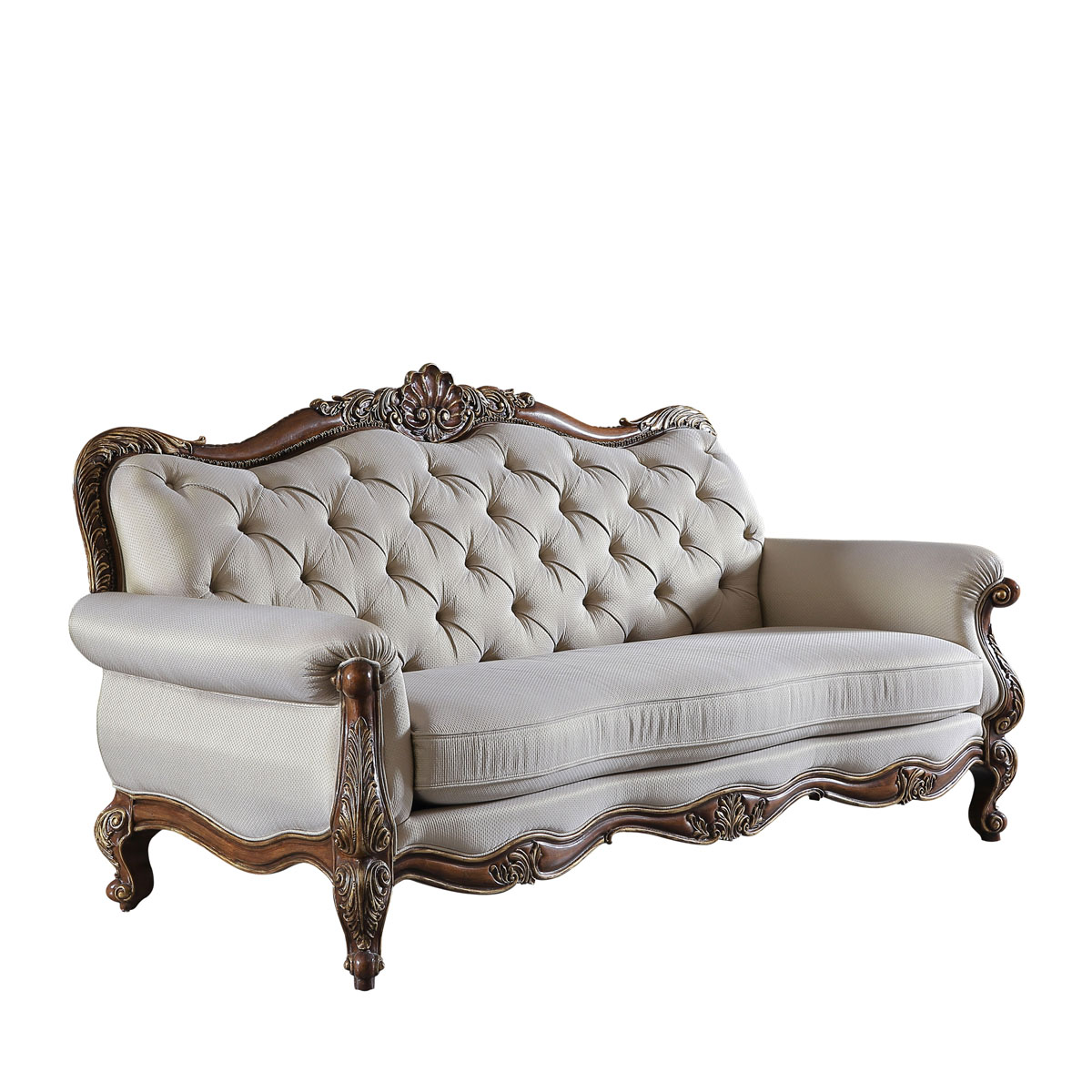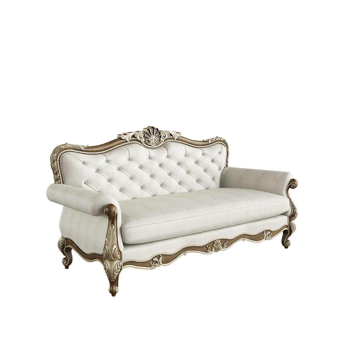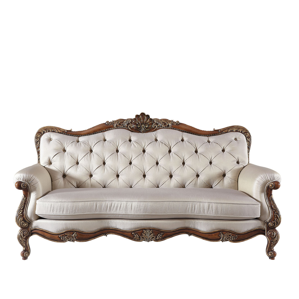 * 线条行的沙发造型犹如香颂般高低起伏的音律, 精致的实木雕刻是其中曼妙的点缀, 双重触感的软包部分带来杜乐丽花园的休闲惬意。