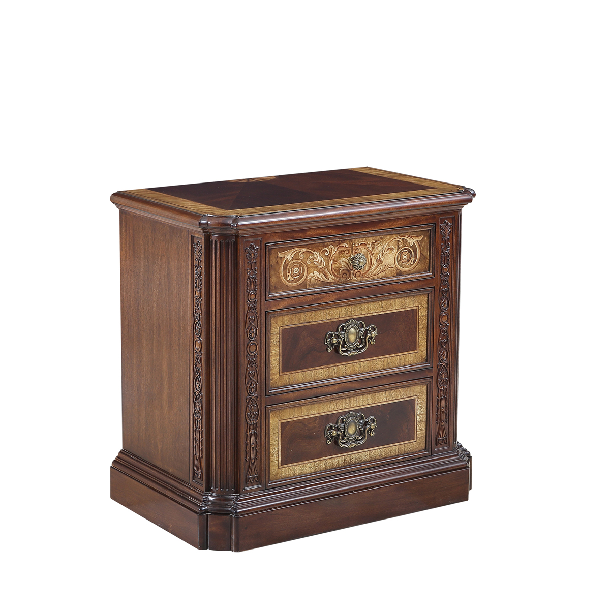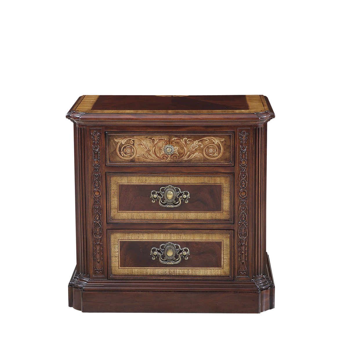 * 以现位于美国白宫中象征友谊和权力的坚毅桌(英语:Resolute desk)为设计意念, 以实木拼贴和雕刻工艺,将具有纪念意义的历史时刻融入其中,实用性的功能设计更是把艺术和生活完美结合, 是宫廷系列华盛顿美式床头柜的特色。