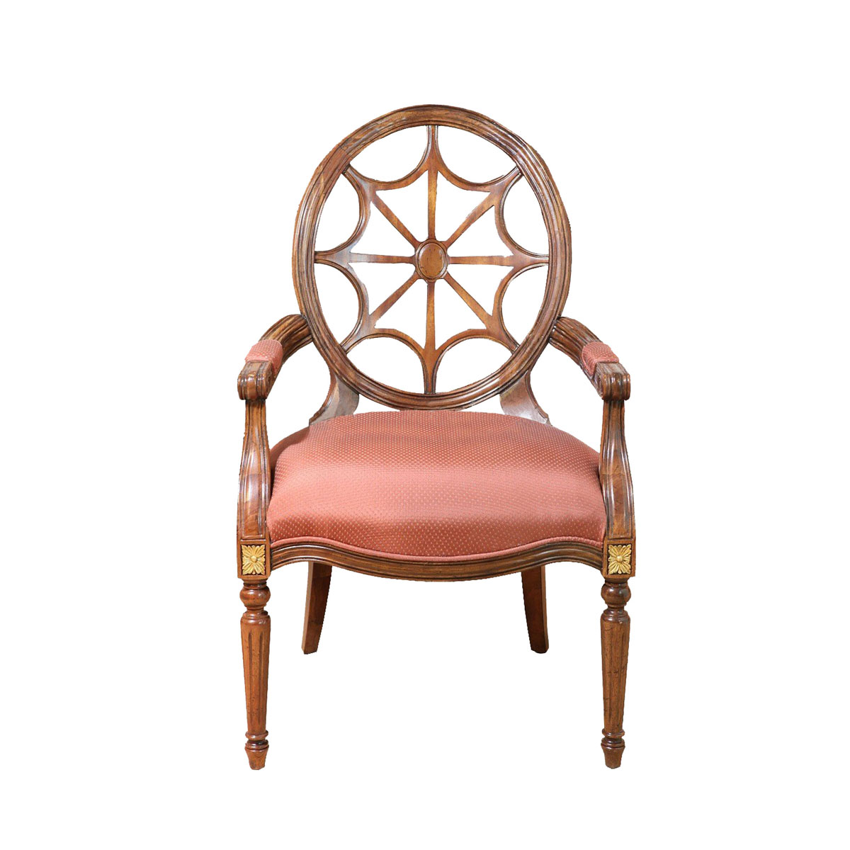 * 以在英国艺术领域有著重要地位的航海元素为设计灵感,使用船舵造型的椅背与锥形脚设计,结合贵气的红色丝绒和舒适的坐垫,彰显了王室的尊贵品位;配上精致的手工雕刻细节和贴金箔工艺,是豪华系列温莎堡英式扶手椅的特色;