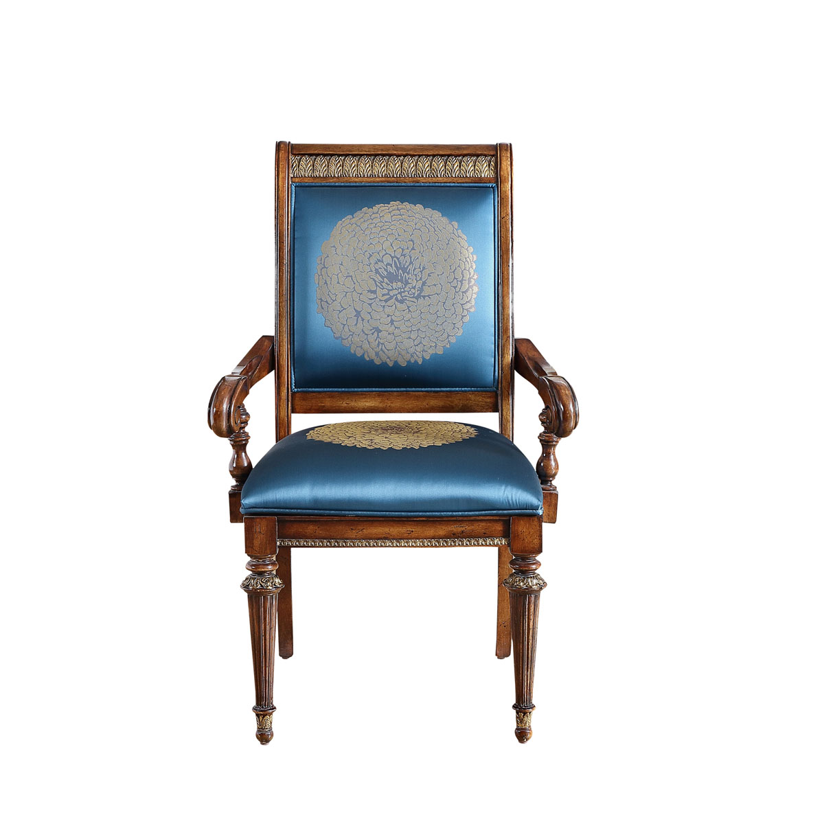 * 以17世纪意大利帝国EMPIRE风格为设计元素,结合意大利人重生活懂艺术的品位追求,使用代表荣誉的月桂叶型雕刻和锥形的腿脚设计、精致的手工雕刻细节和描金工艺,以显示王权的稳固地位;搭配以意大利国花 ——雏菊为意念的金菊图案,还有布艺和厚实柔软的填充物,精彩展现了意式悟空体育官网奢华绚丽而又极富艺术人文气息的迷人魅力;