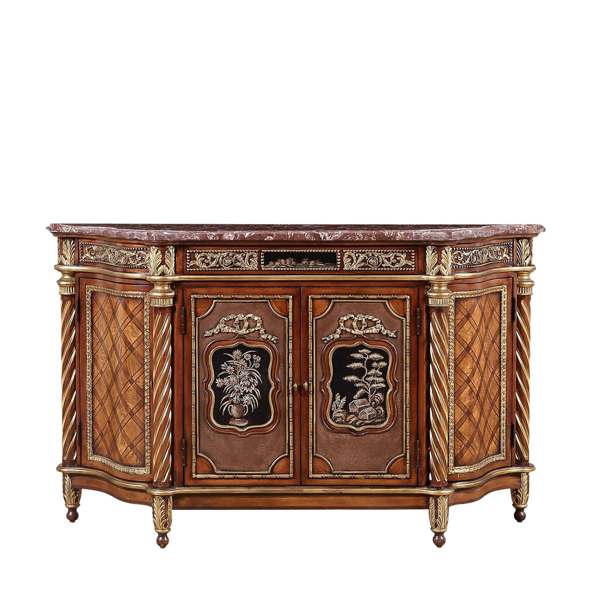 * 手工雕刻的工艺细节,结实的连接技术; * 光滑的花岗岩石表面; * 一个储物抽斗,其底部采用经典硬木实木滑轨设计; * 门内各有一块可调层板; * 底部装有可调脚钉;