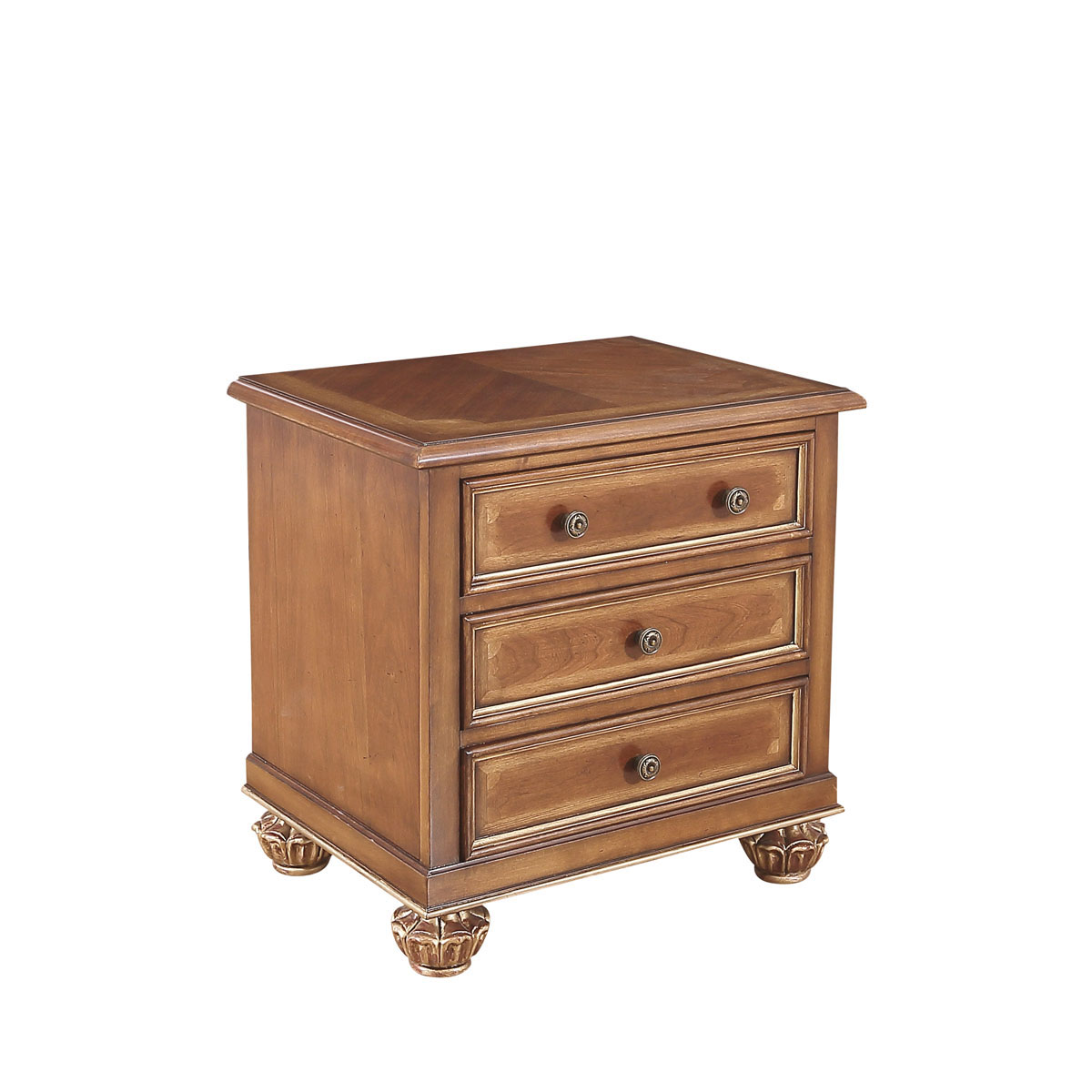 * 手工拼花藤蔓效果,用多种上等木皮拼制而成 * 三个储物斗,底部采用经典的硬木实木滑轨; * 脚底部装有可调脚钉