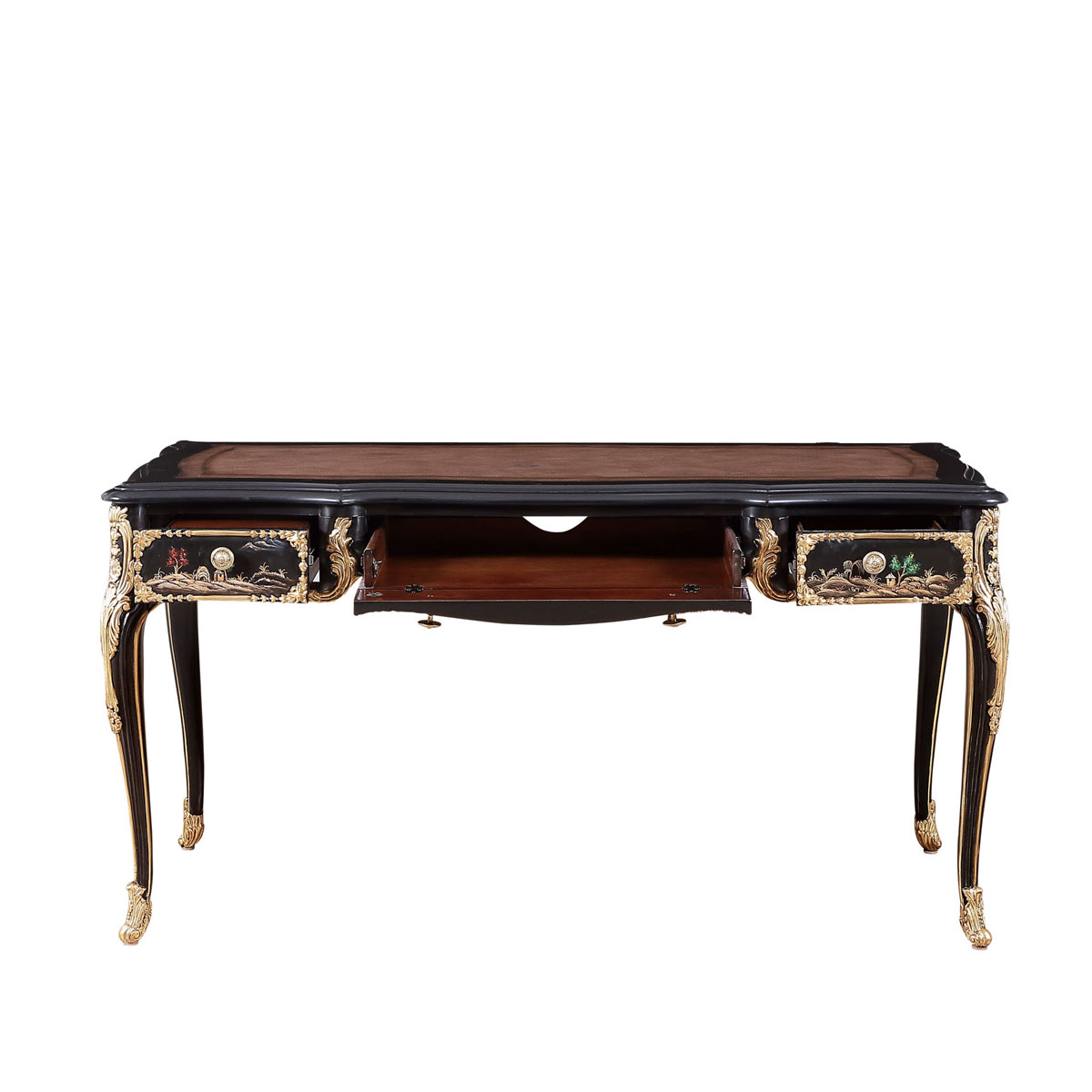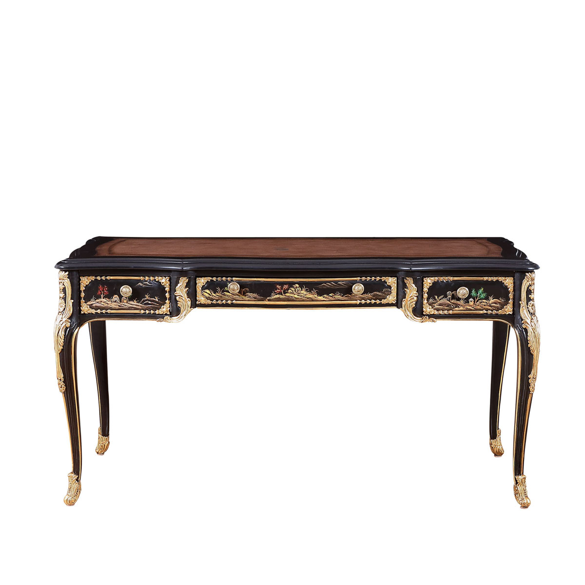 * 结合Louis XV (路易十五)时期洛可可风格雕刻弯腿与优雅的黑底金漆中国山水手绘,把法国凡尔赛宫中的经典呈现,表达法国宫廷的华丽与传承。