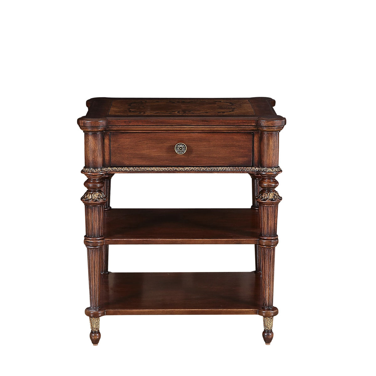 * 一个储物抽斗,底部装有硬木实木滑轨; * 底部的层板可放置家庭装用品; * 脚底部装有可调整脚钉。