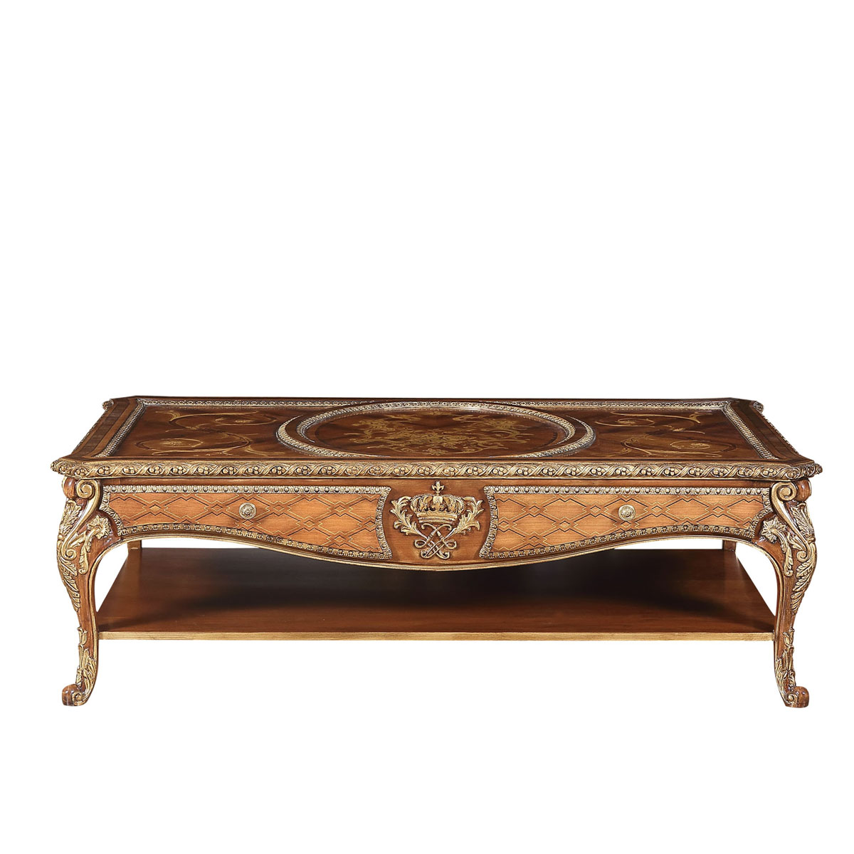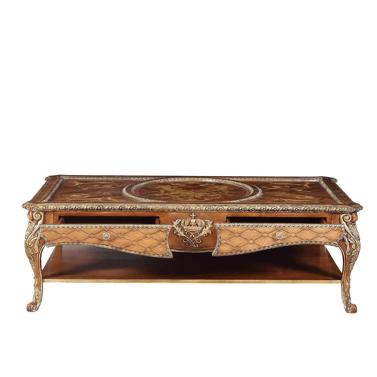 * 结合代表“太阳王” Louis XIV (路易十四)的图腾、Louis XV (路易十五)时期洛可可风格雕刻弯腿与Louis XVI (路易十六)时期新古典风格实木簿片镶嵌图腾,把法国凡尔赛宫中的经典呈现,表达法国宫廷的华丽与传承。