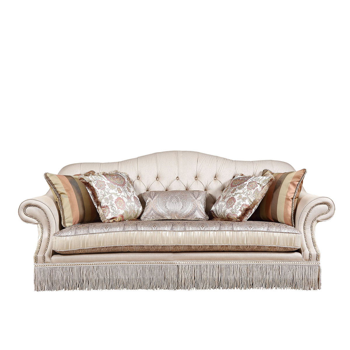 * 独特的拉扣工艺,线条优美的坐垫和裙脚的流藓设计,独特的抱枕配搭和包有丰厚的填充物坐垫和靠背。这款沙发表现了法国人独有的浪漫和对舒适的追求。