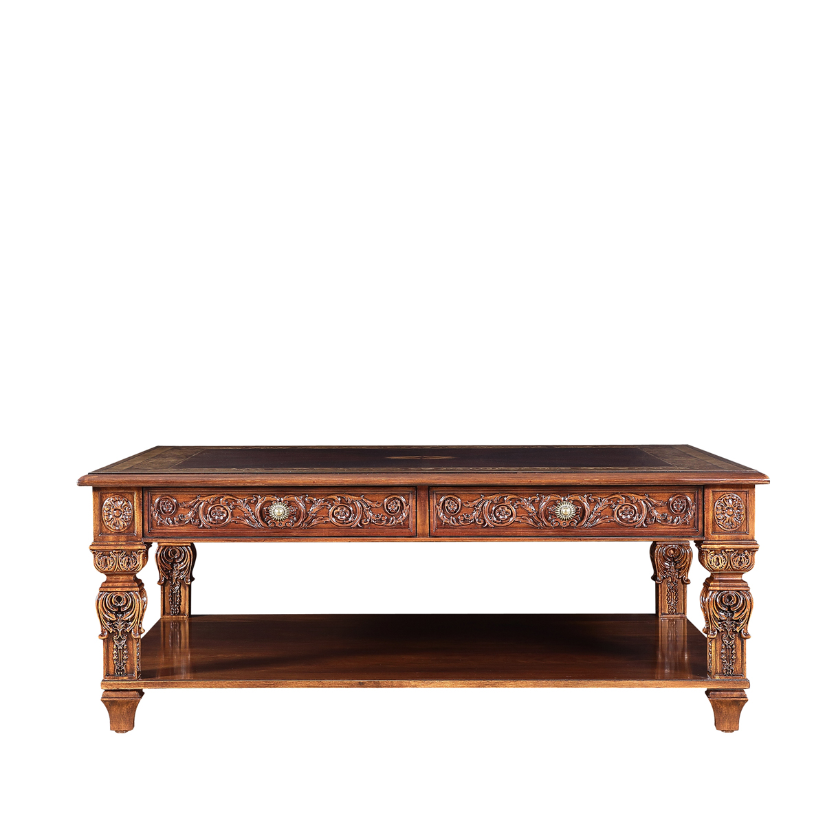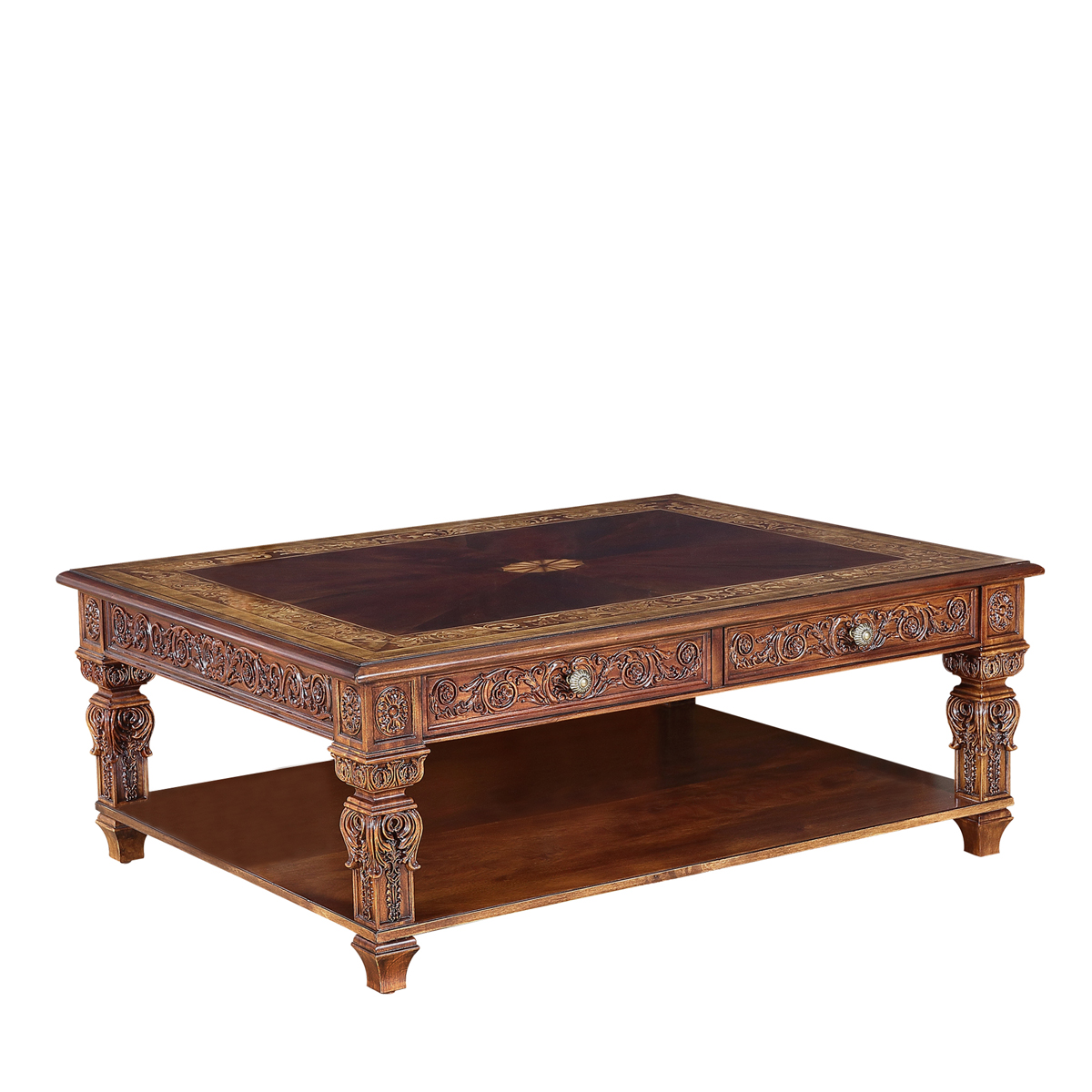 * 以现位于美国白宫中象征友谊和权力的坚毅桌(英语:Resolute desk)为设计意念, 以实木拼贴和雕刻工艺,将具有纪念意义的历史时刻融入其中,实用性的功能设计更是把艺术和生活完美结合, 是宫廷系列华盛顿美式咖啡台的特色。