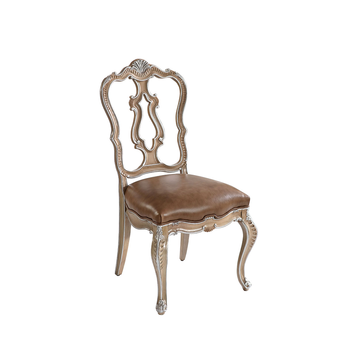 * 以意大利维罗纳的唯美故事为背景,采用花瓶造型镂空椅背与经典的弯腿设计,饰以精致的手工卷叶雕刻细节,充分彰显了古典奢华与现代美学的结合,精彩演绎了意大利人对奢华绚丽的宠爱。