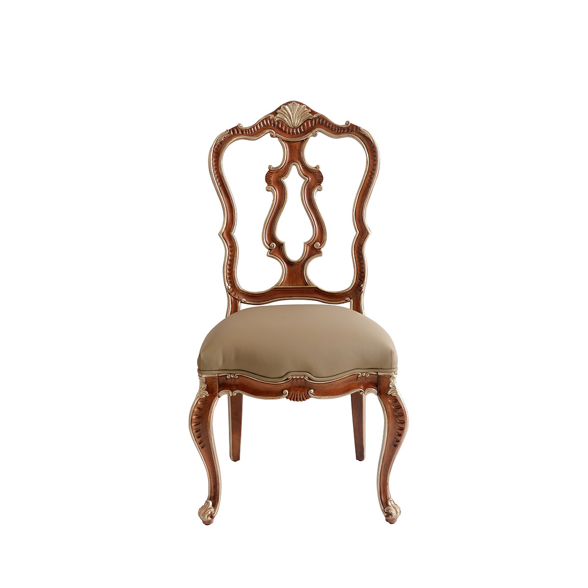* 精细的椅脑与脚贝形雕刻; * 可拆装的软包座垫; * 提供多种面料可供选择;