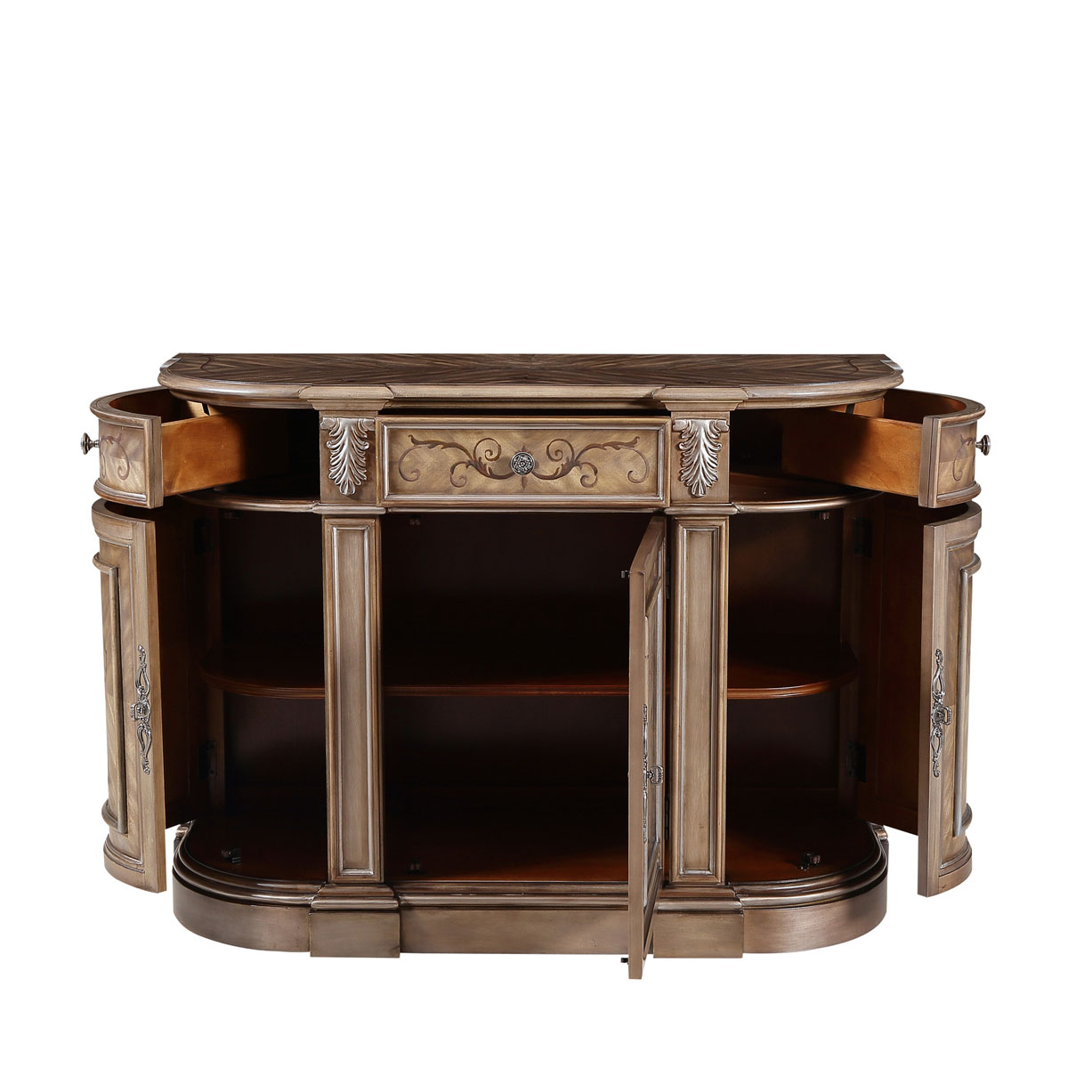 * 可作为卧室、餐厅、客厅或休息室的理想悟空体育官网; * 三个储物抽斗,底部采用硬木实木滑轨; * 三扇实木门板,门内各有一块可调层板; * 脚底部装有可调脚钉;