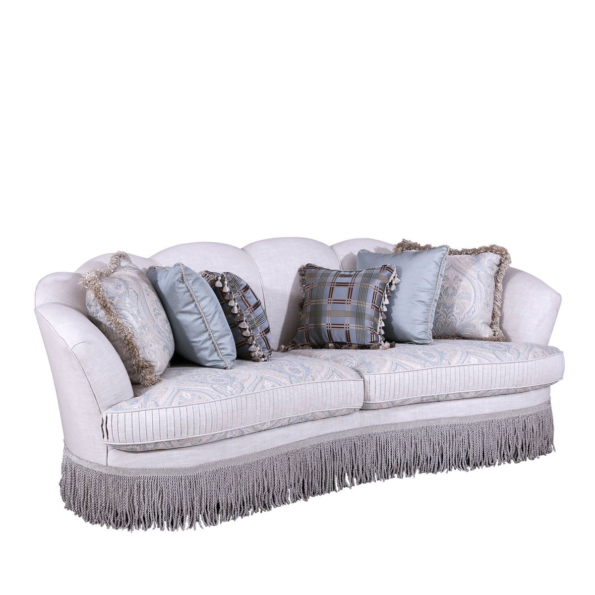 * 坐垫和靠背包有丰厚的填充物; * 标配抱枕:480*480 2个 550*550 4个 * 提供多种面料可供选择;