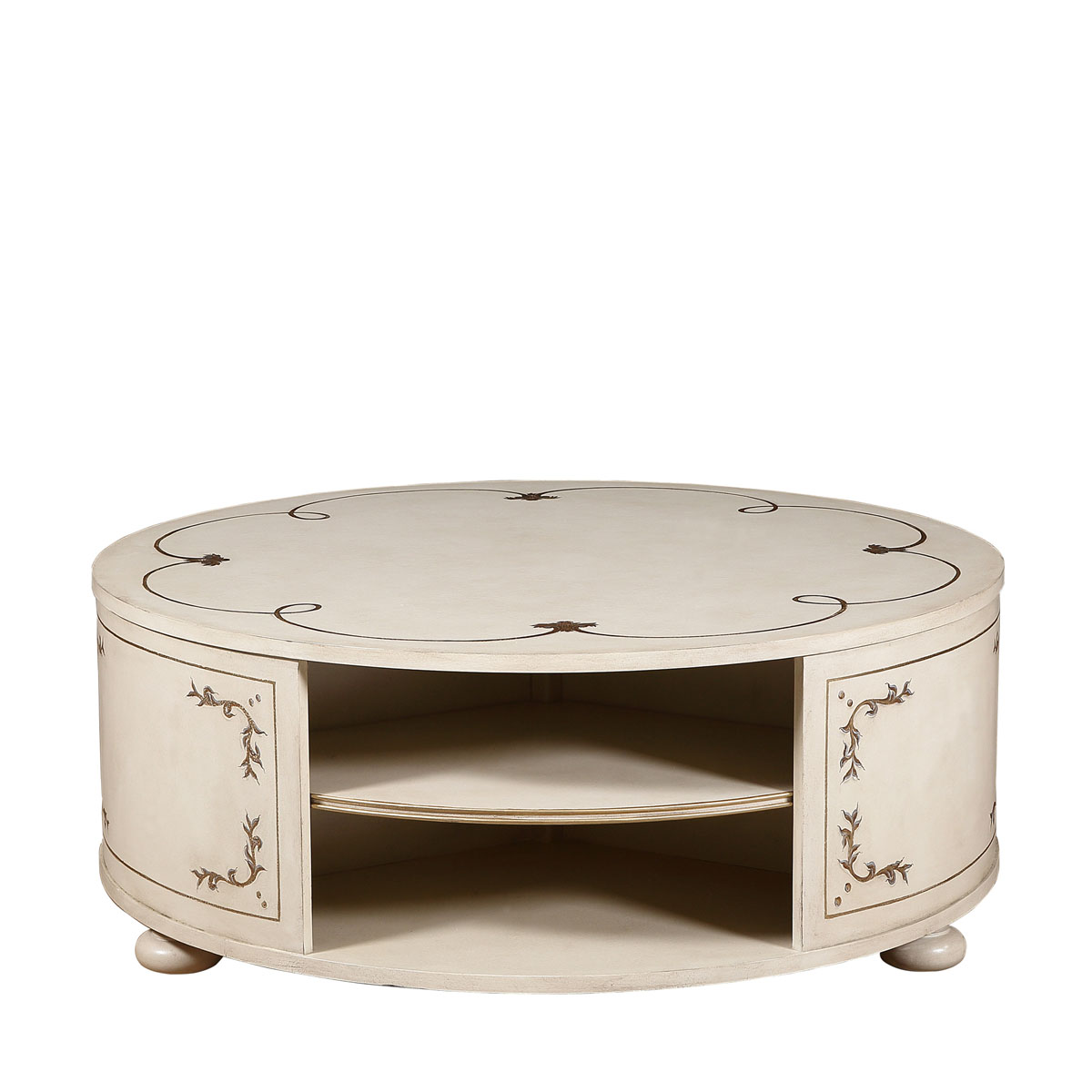 * 手工木皮拼贴工艺; * 三处开放式设计,内有一块固定层板; * 脚底部装有可调脚钉;