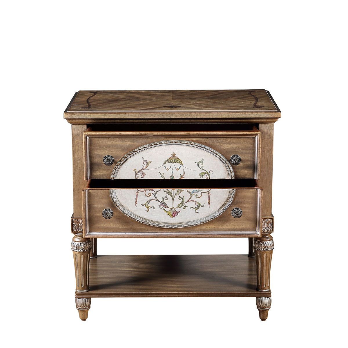 * 二个抽斗,底部装有硬木实木滑轨; * 可拆装设计; * 底部的层板可放置家庭装饰品; * 底部装有可调整脚钉;