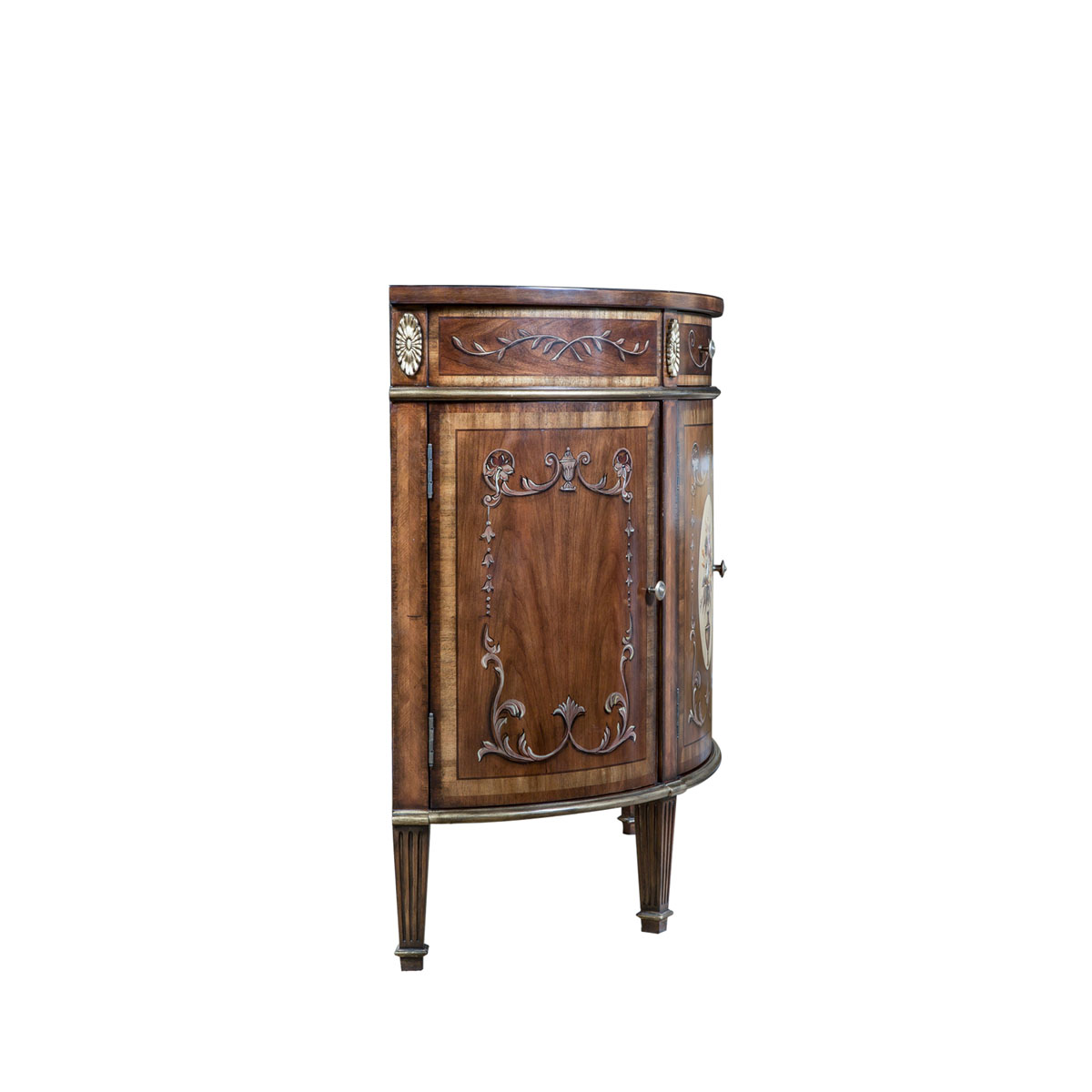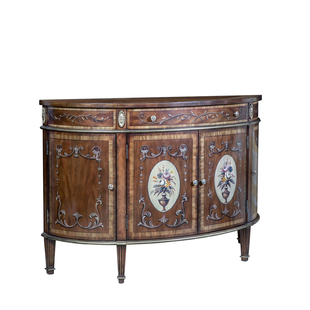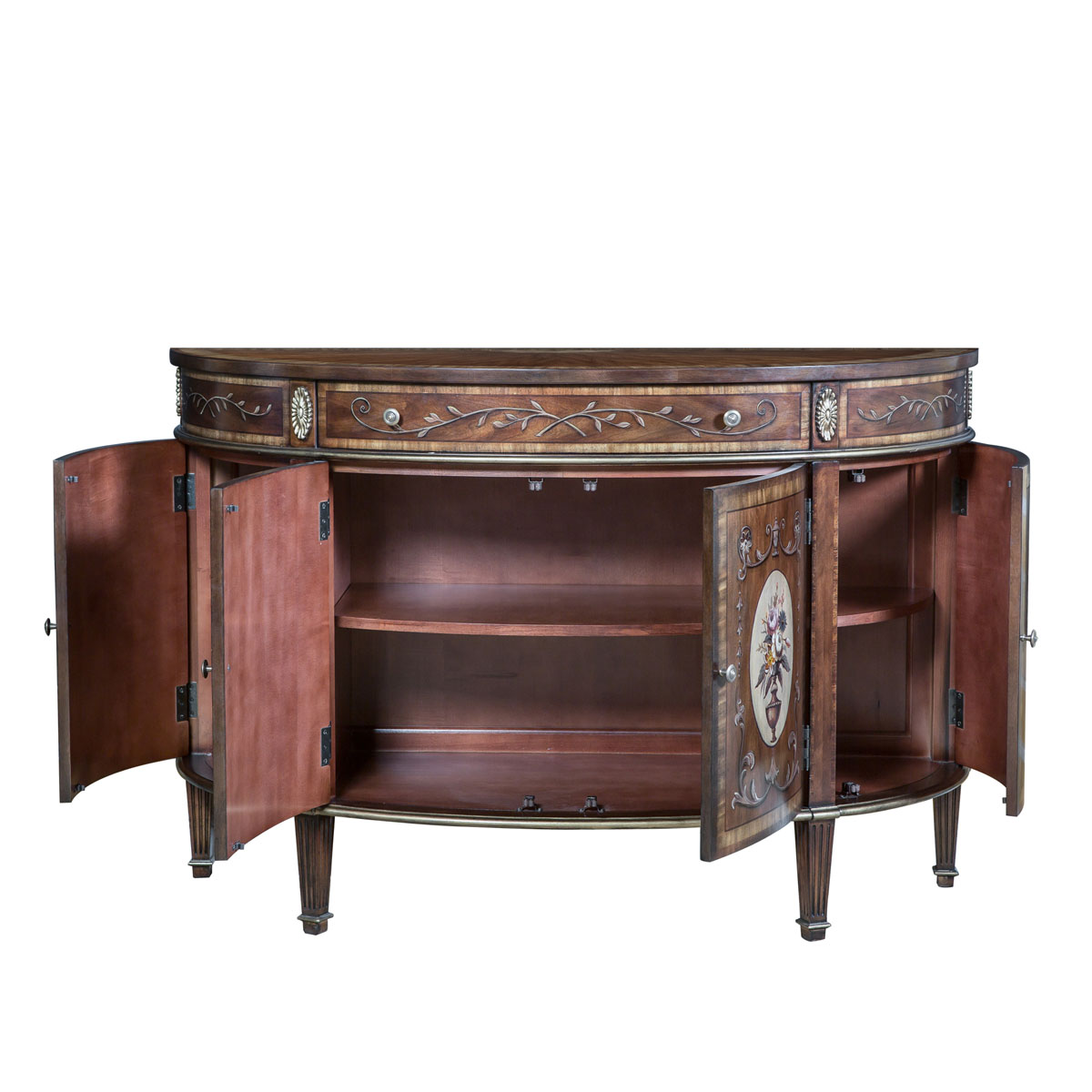* 花纹图案都是经过专业工艺师精心绘制而成, 所以每件产品都是独一无二的; * 一个储物抽斗,底部采用硬木实木滑轨 * 4扇彩绘实木门板,门内各在一块层板 * 脚底部装有可调脚钉;