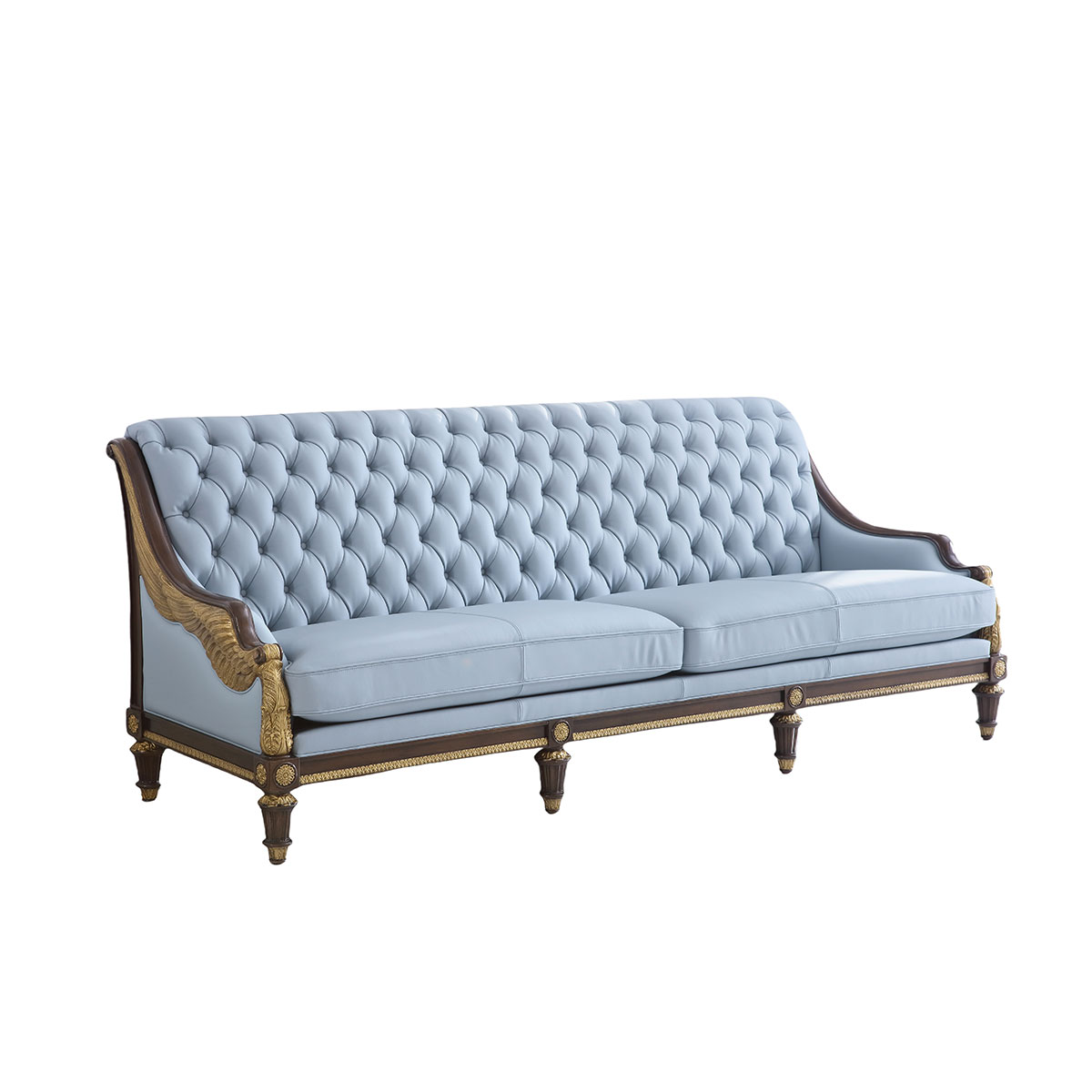 * 以17世纪意大利帝国EMPIRE风格为设计元素,真皮材质搭配仿宝石纽扣,手工雕刻处处彰显非凡气派,打造奢华家居,让艺术与生活完美结合