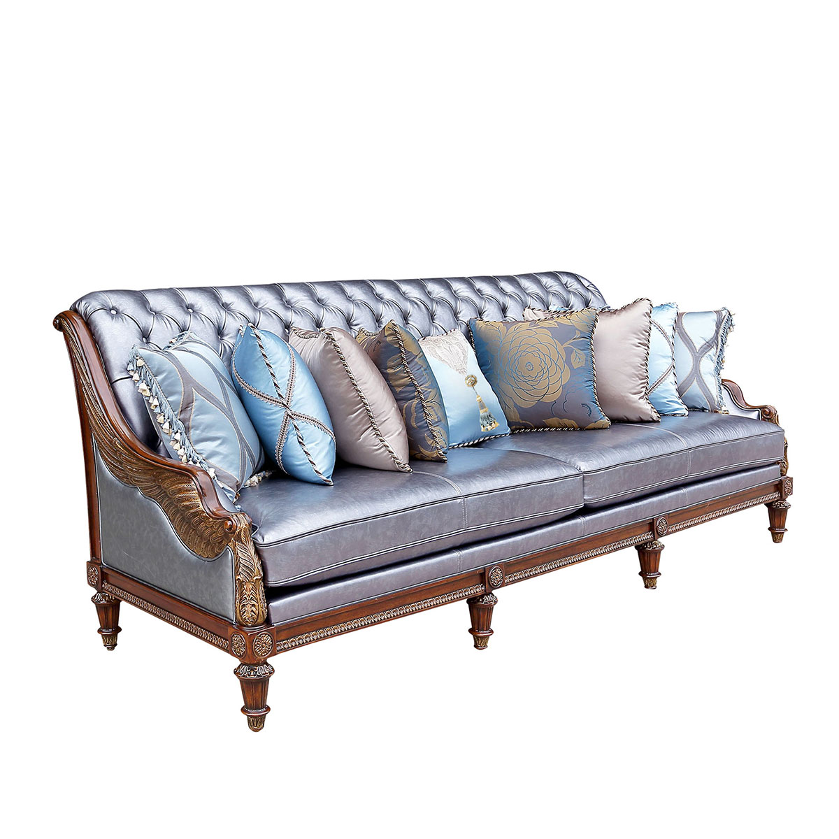 * 本款沙发可选择四片拆装(底座、左扶手、右扶手、后背) * 手工雕刻的工艺细节 * 细致的拉扣工艺和包有丰厚的填充物坐垫; * 标配抱枕:550*550 6个 480*480 1个 * 提供多种面料可供选择;