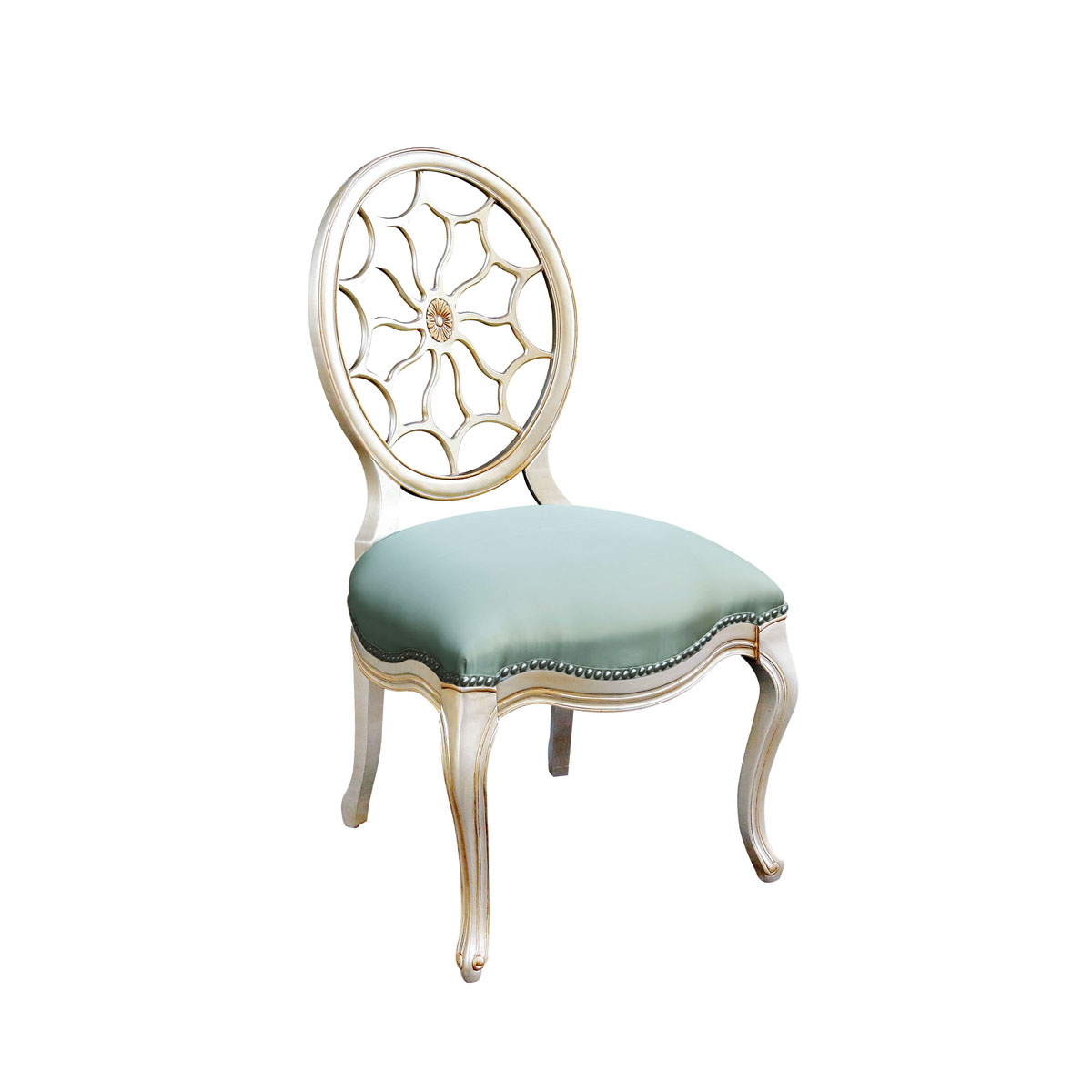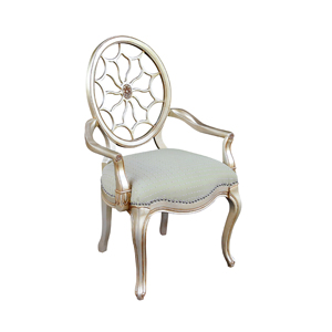 * 参考乔治三世时期的古董造型设计,使用轮子构造椅背和安妮王后腿,配以精致的手工雕刻细节和涂金工艺、浪漫的花形布艺面料和厚实柔软的填充物,是豪华系列凡尔赛玫瑰法式单椅的特色。