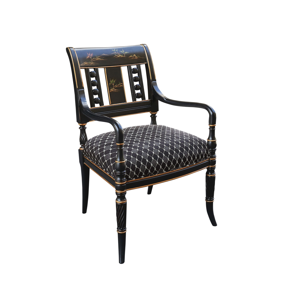 * 以英国温莎堡为设计元素,使用高贵的手工彩绘和柔软布艺,彰显了尊贵的古雅品味。搭配极具中国情调的黑金色,经典再现了18世纪英国皇室热衷东方元素的家居文化潮流。
