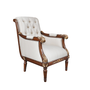 卷叶雕刻的扶手设计、舒适的椅背角度、细致的雕刻和贴金箔工艺。这款休闲椅是QueenVictoria(维多利亚女皇)时期的设计,我们还可以在她晚年的照片中找到它的踪影。并配上触感舒适的布艺和包有丰厚的填充物坐垫和靠背。