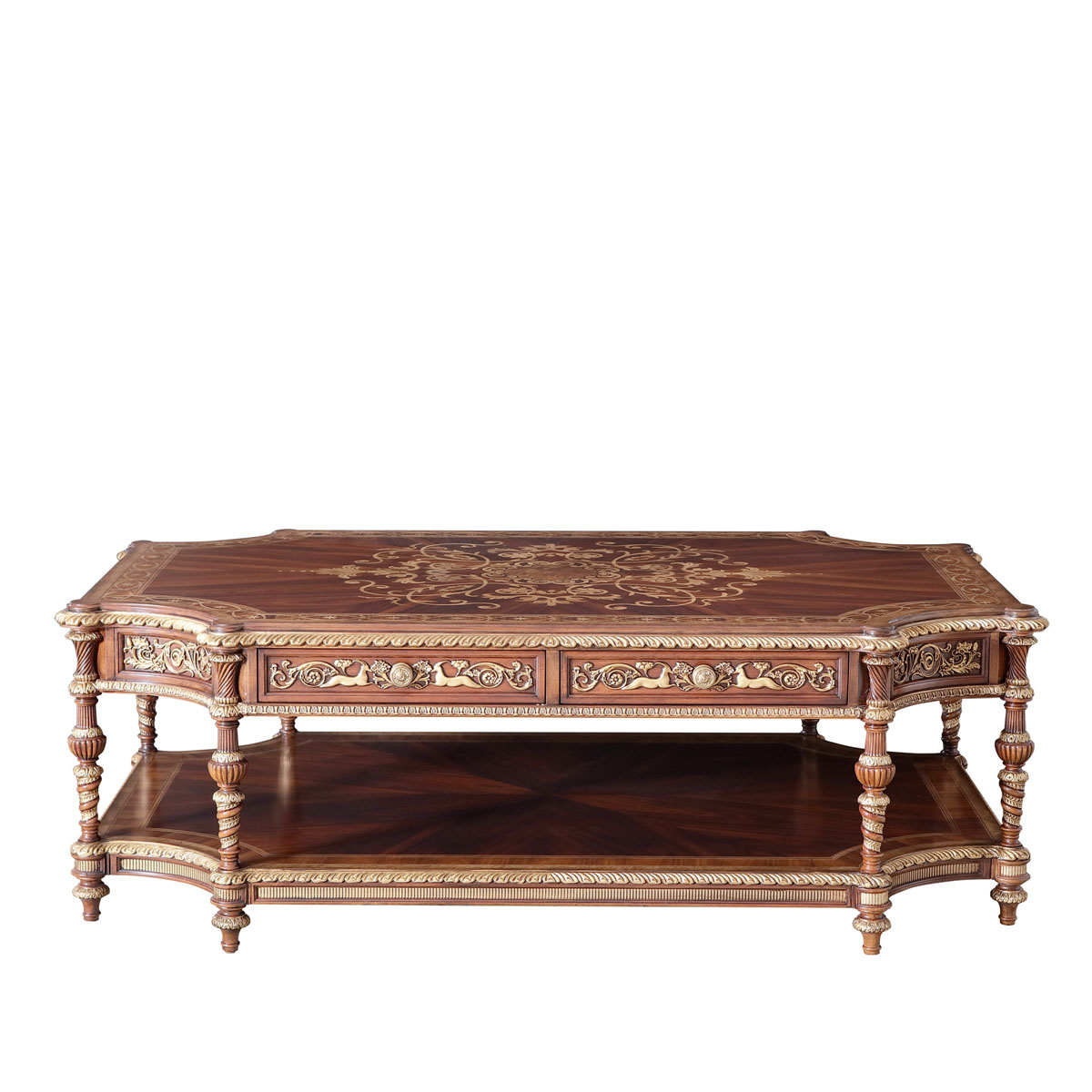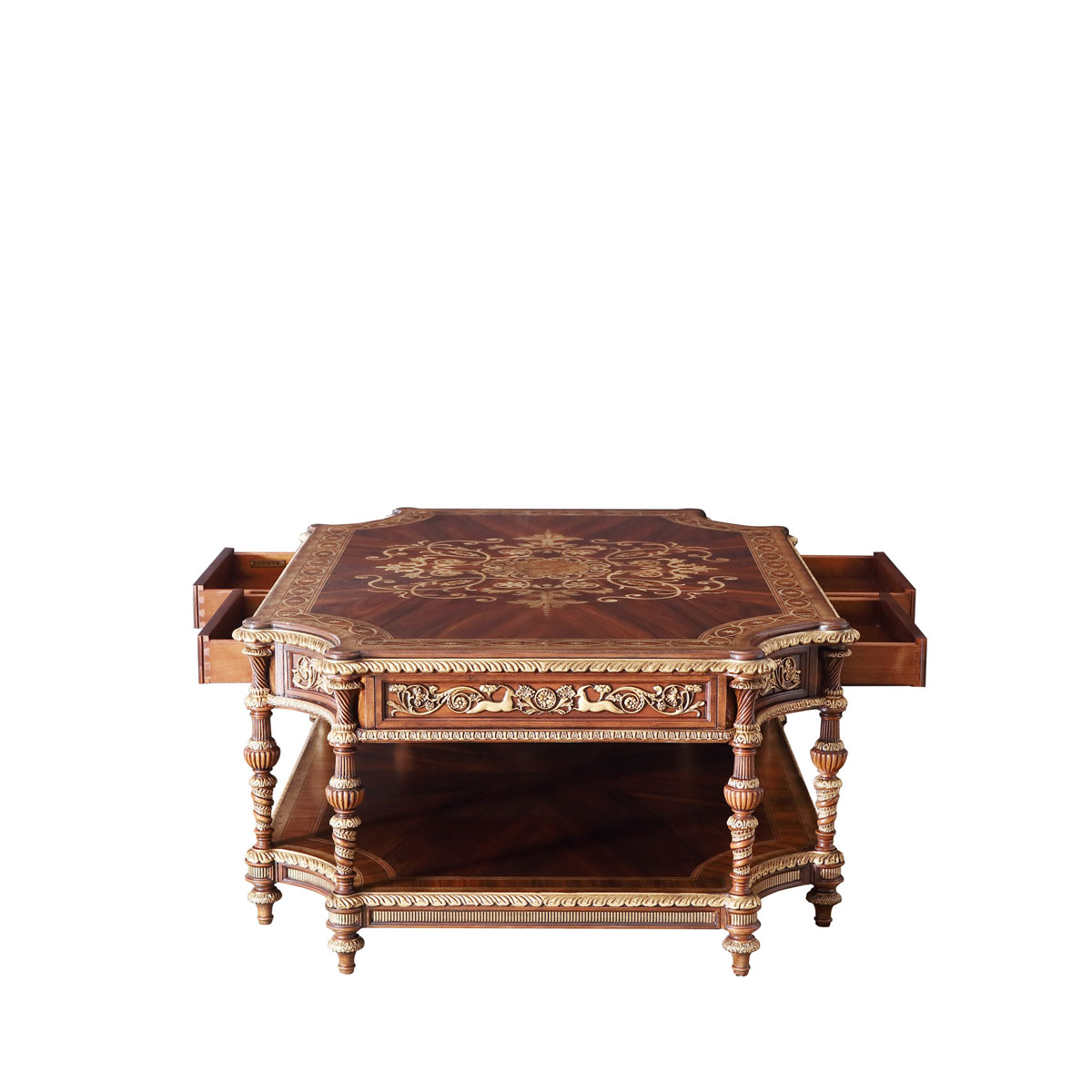* 手工雕刻彩绘饰以仿古效果,为奢华品味增添雅致,配上独特图案与金箔,精彩展现了皇室贵族的荣耀历史。