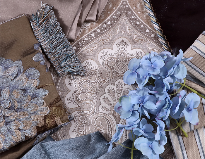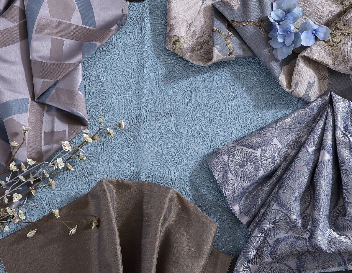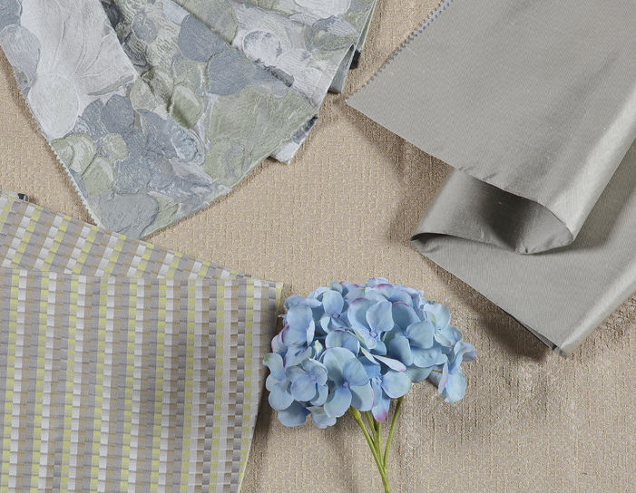 加了灰色调的尼加拉蓝多了几分静谧柔美,来自度假天堂的颜色,舒缓放松;丝缎布艺具有非常美丽的光泽感和层次感更显质感和活力。